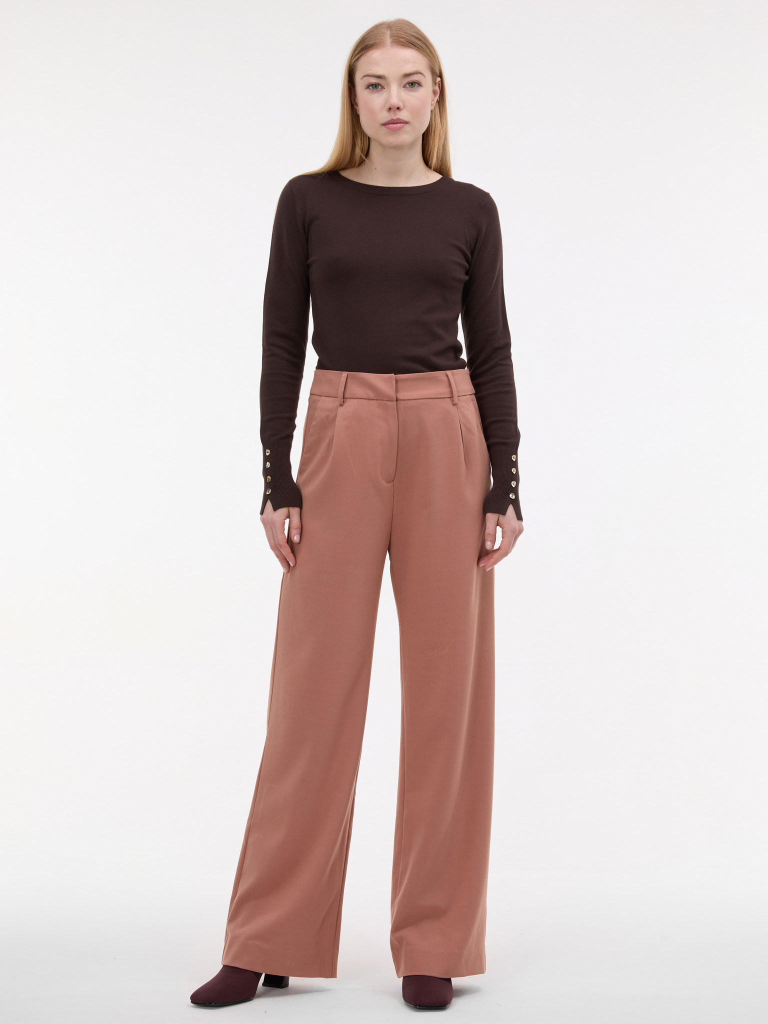 Sötét bézs strukturált egyenes szárú nadrág Moodo