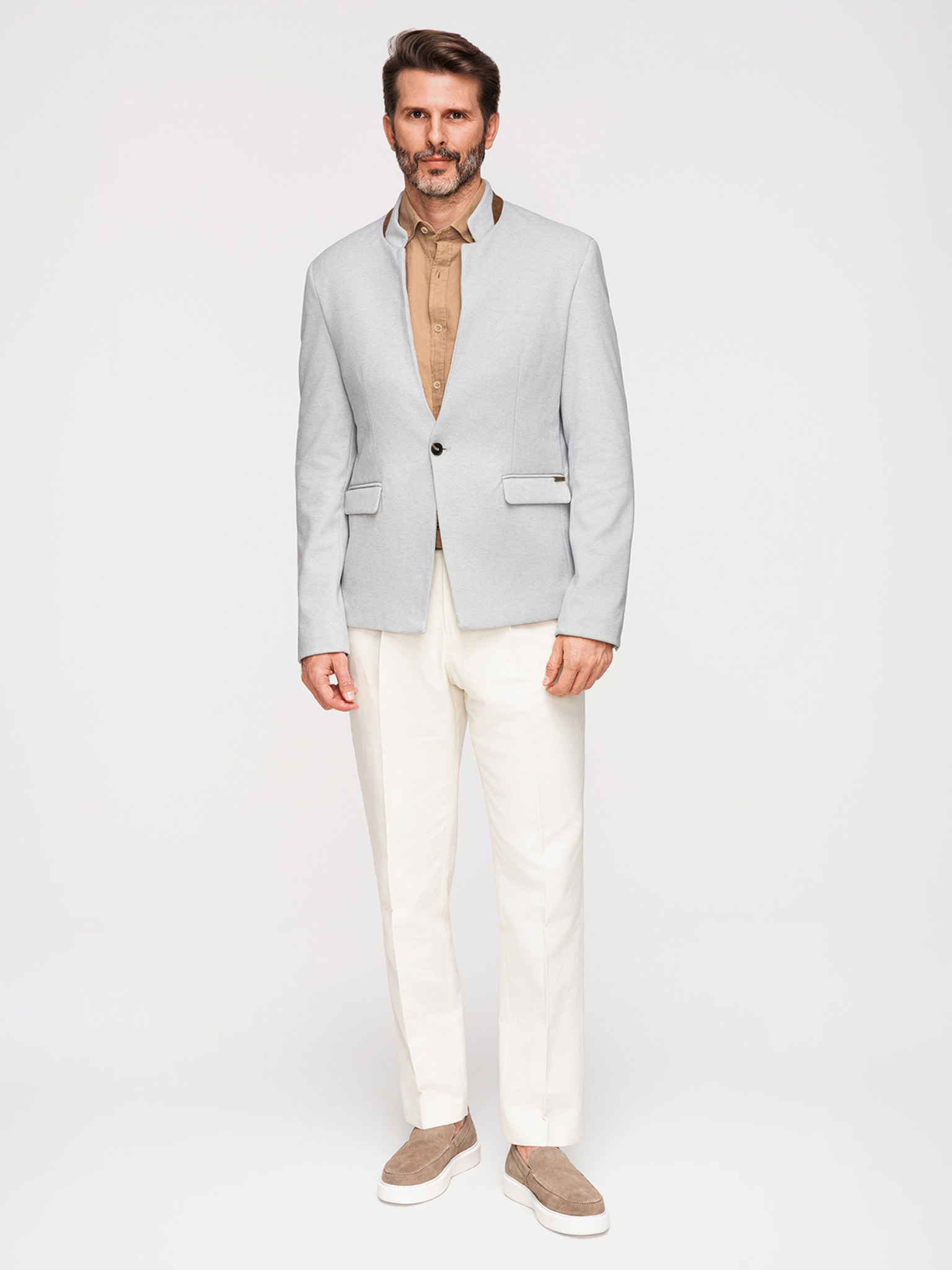 Ombre Clothing férfi barna színű kabát állógallérral