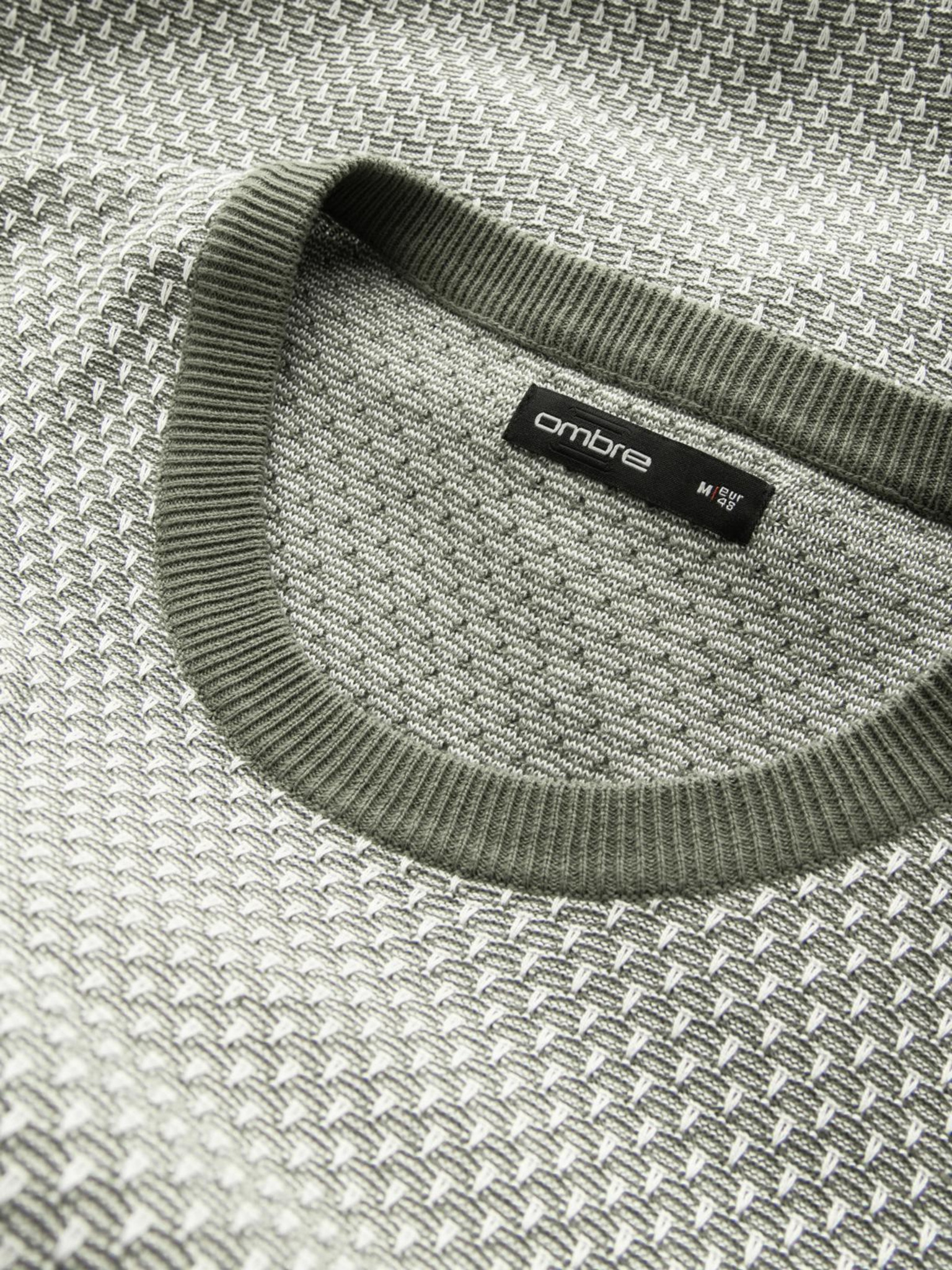 Férfi pulóver kontraszt kötéssel és kerek nyakkivágással - sötét olíva V2 OM-SWSW-0122 Ombre Clothing