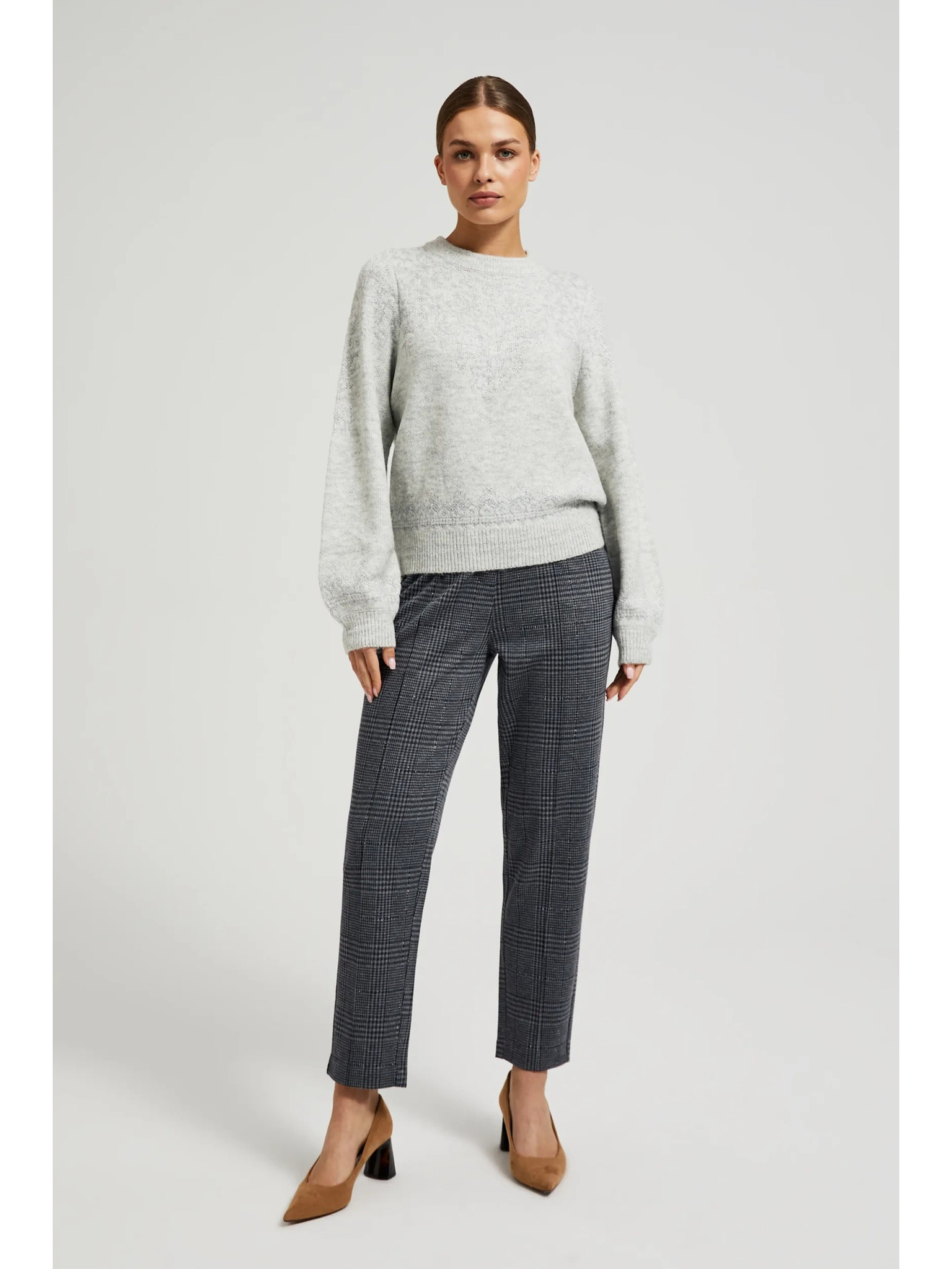 Moodo felfújt ujjú pulóver fémes szállal