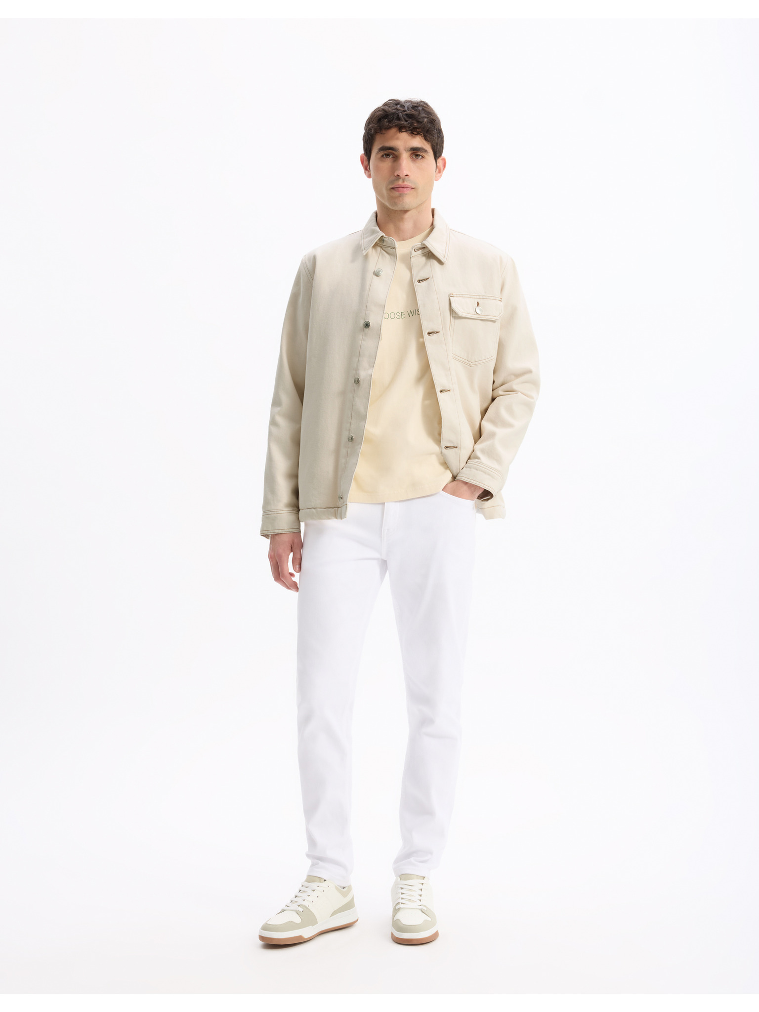 Krémszínű férfi slim fit farmer Celio Coslim4