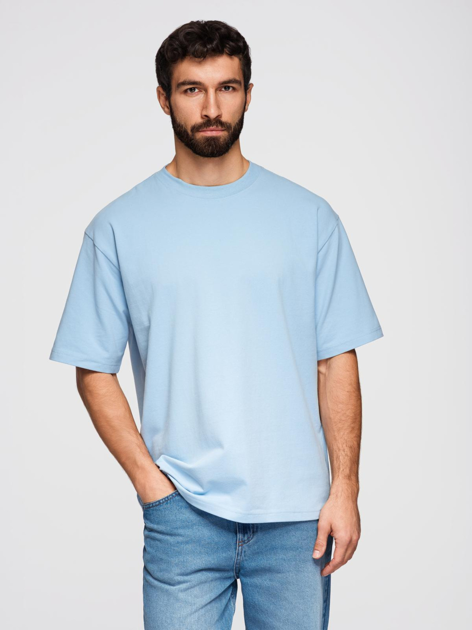 Férfi pamut LOOSE FIT póló kerek nyakkivágással - ecru V2 OM-TSBC-0267 Ombre Clothing
