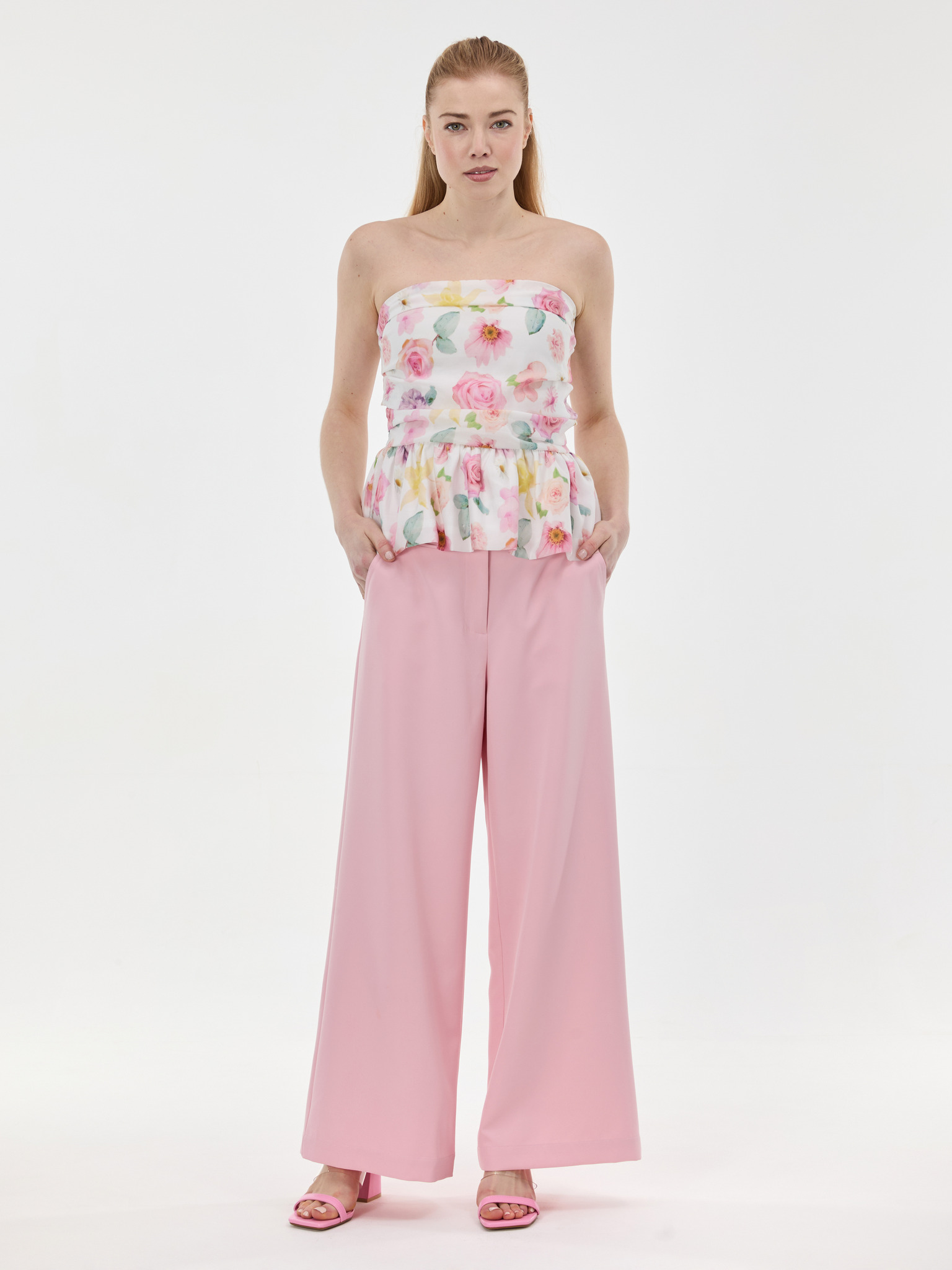 Rózsaszín virágos ing fodros ujjakkal Moodo