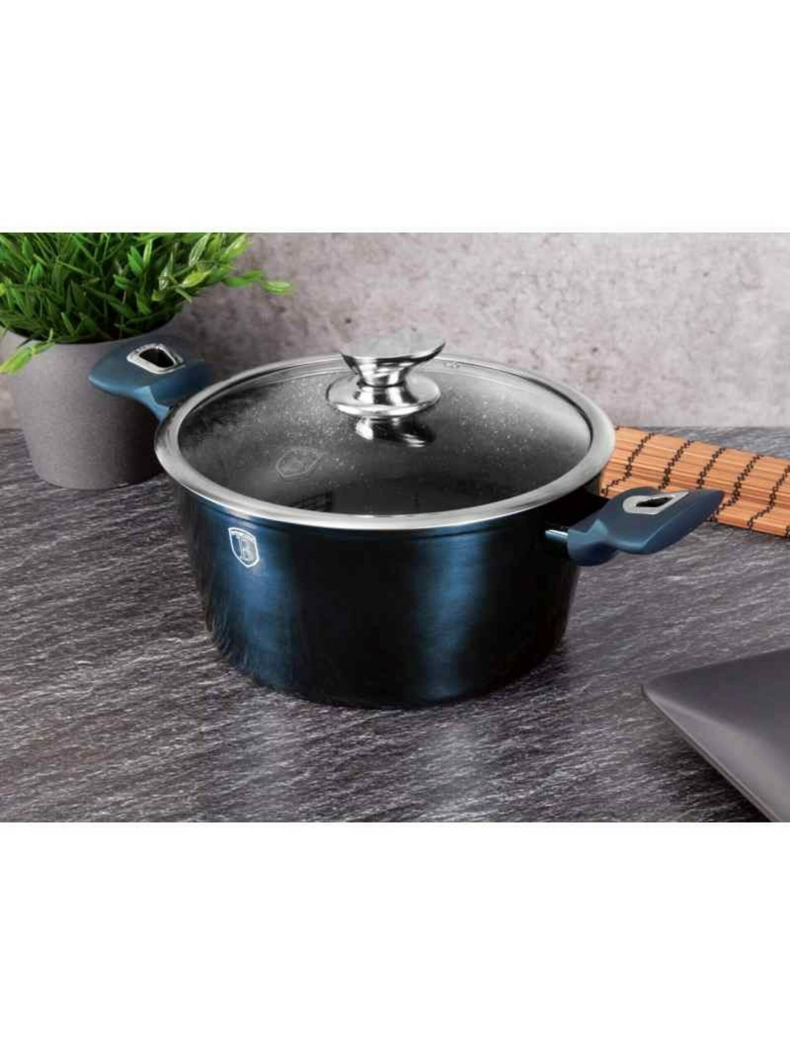 Grillserpenyő márvány felülettel és fedéllel 28 cm BERLINGERHAUS Metallic Line Aquamarine Edition BERLINGERHAUS Metallic Line Aquamarine Edition