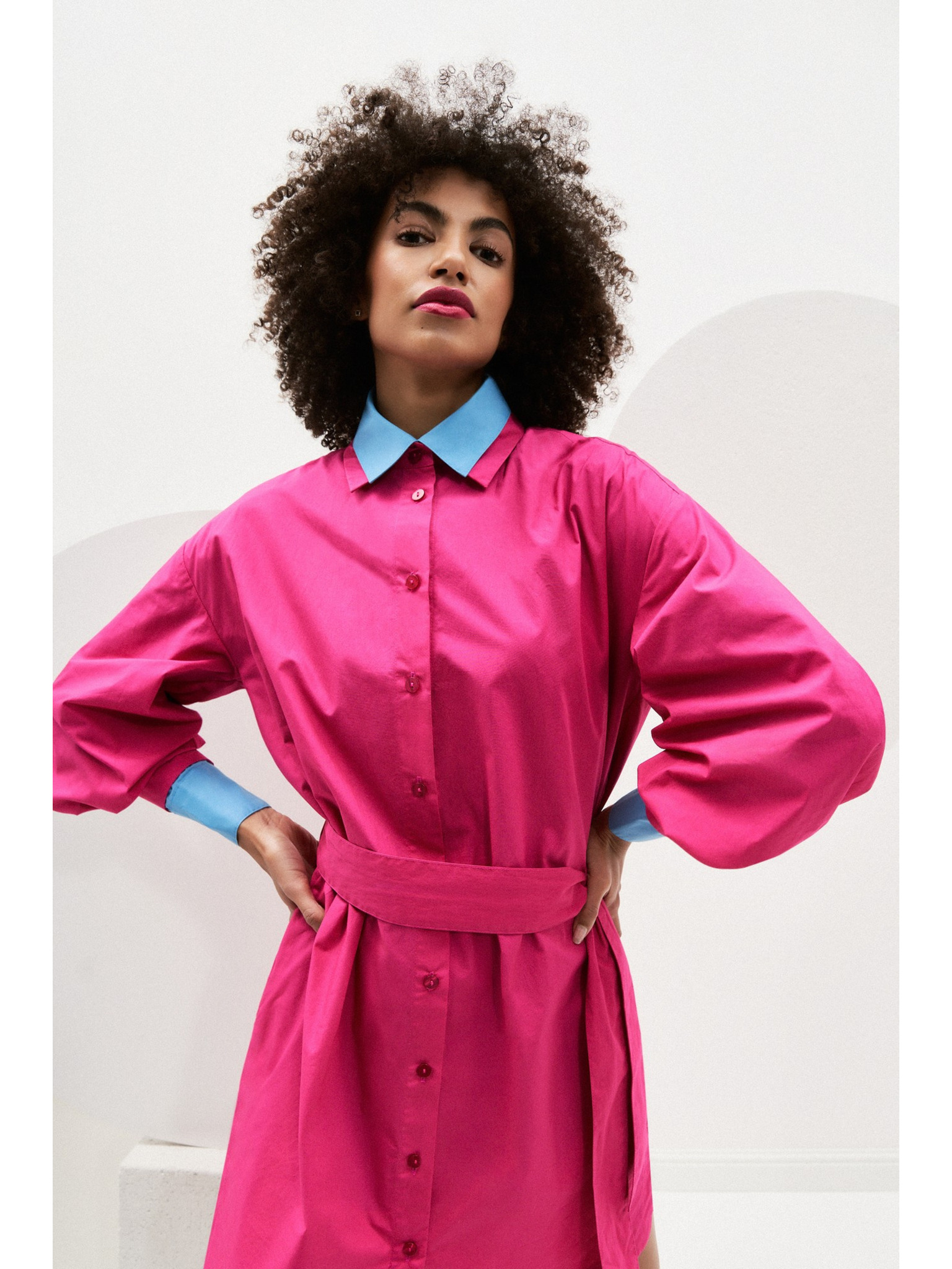 Fekete női ing ruha övvel