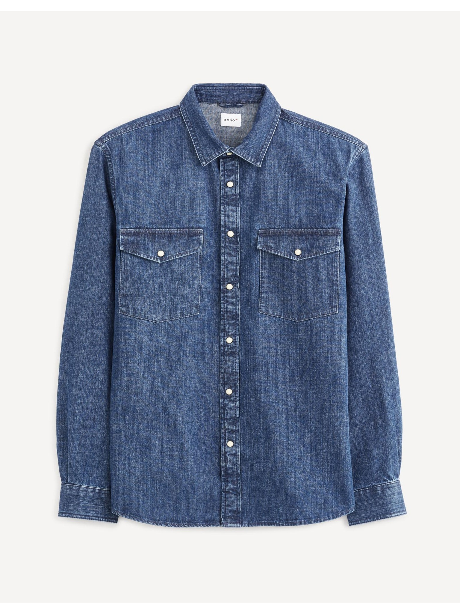 Férfi mintás finom farmer ing zsebbel - világoskék Ombre Clothing