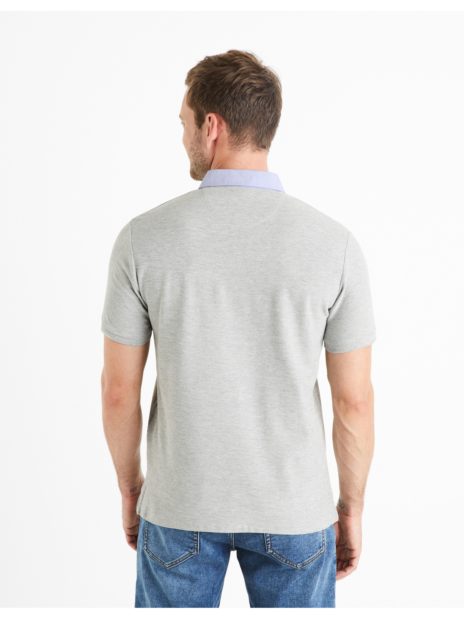 Férfi pólóing nyitott gallérral, gomblyuk nélkül - világosszürke