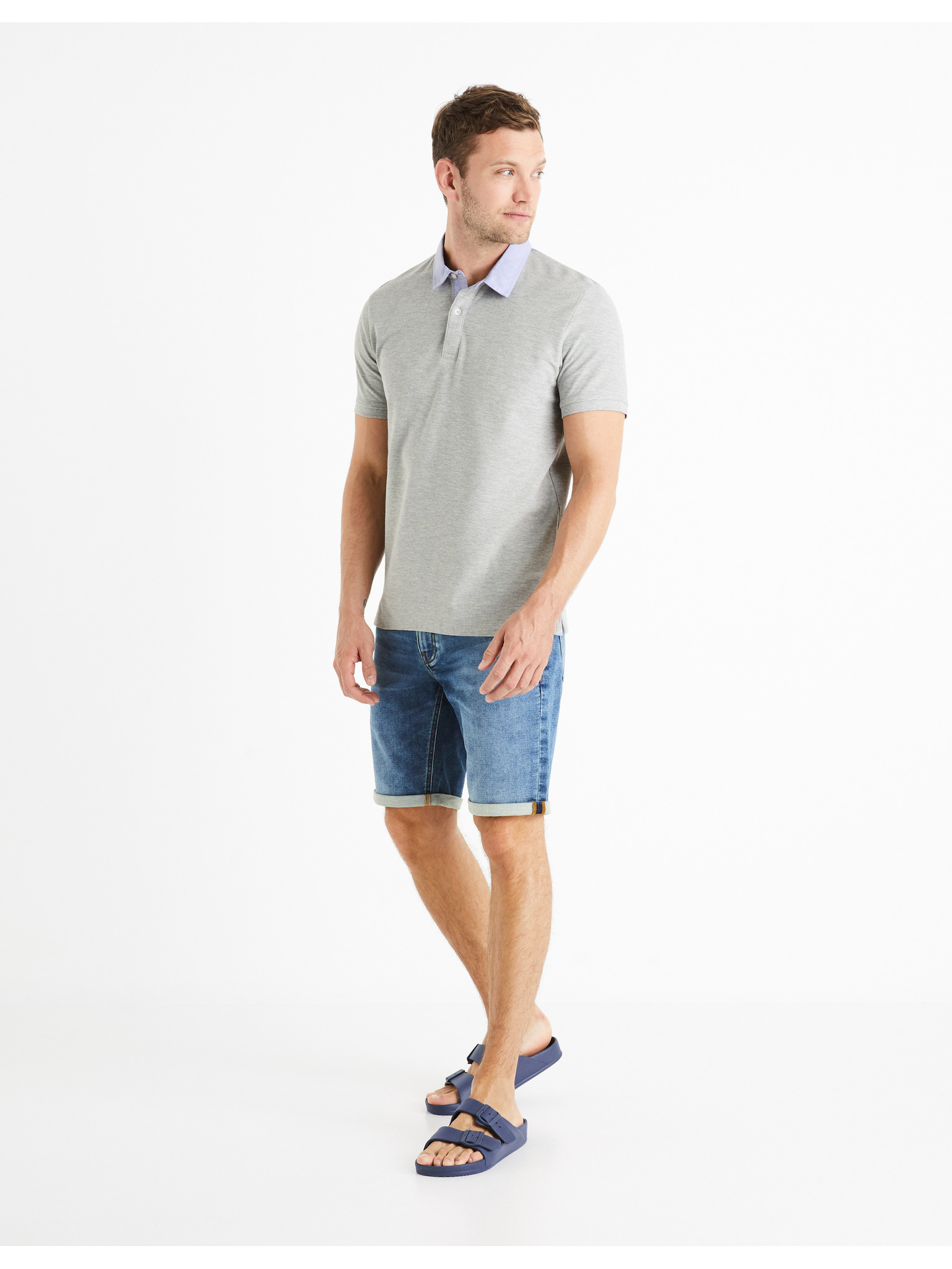 Férfi pólóing nyitott gallérral, gomblyuk nélkül - hamuszürke