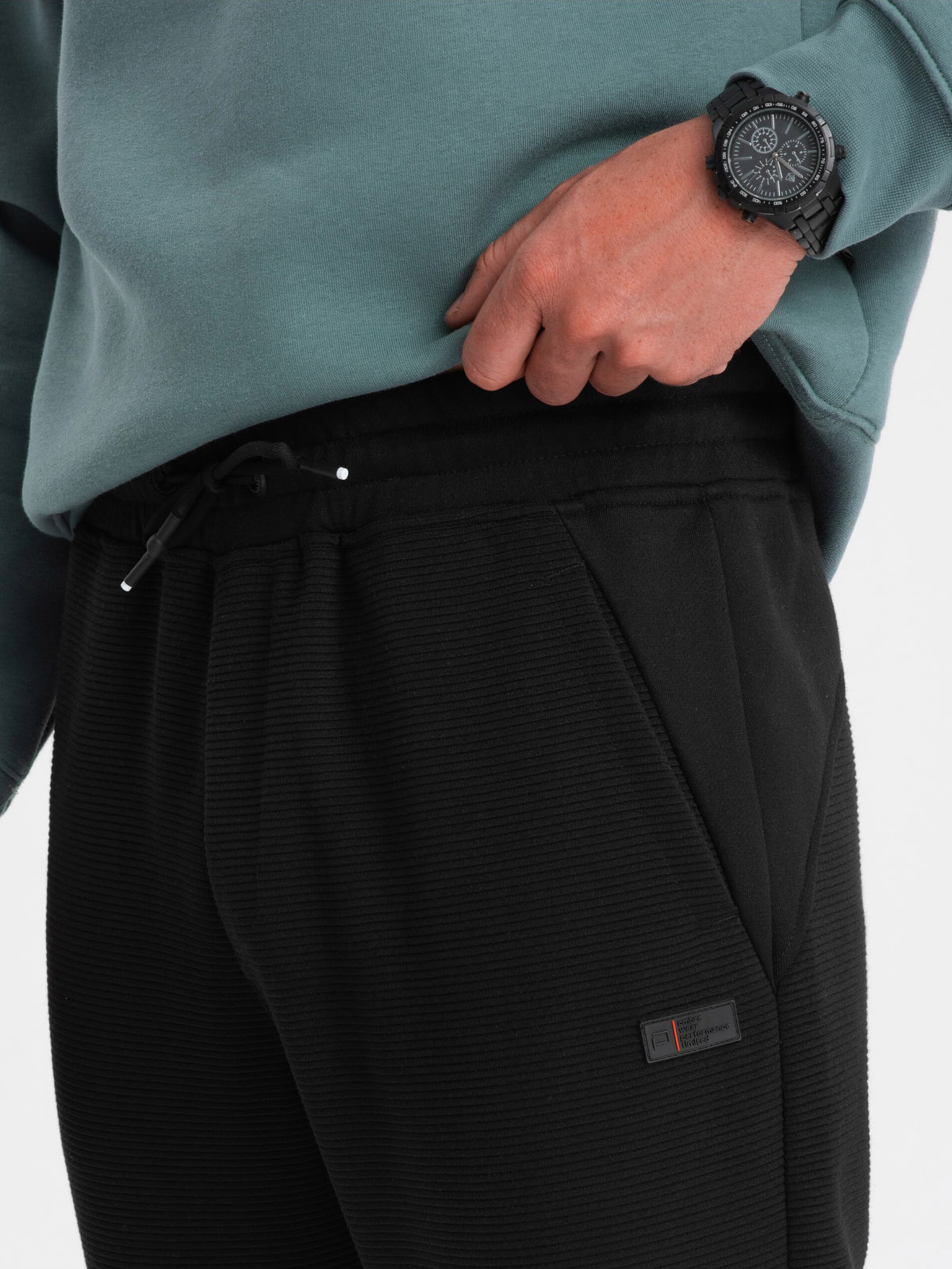 Férfi melegítőnadrág bordázott mandzsettával és díszítő cipzárral Ombre Clothing