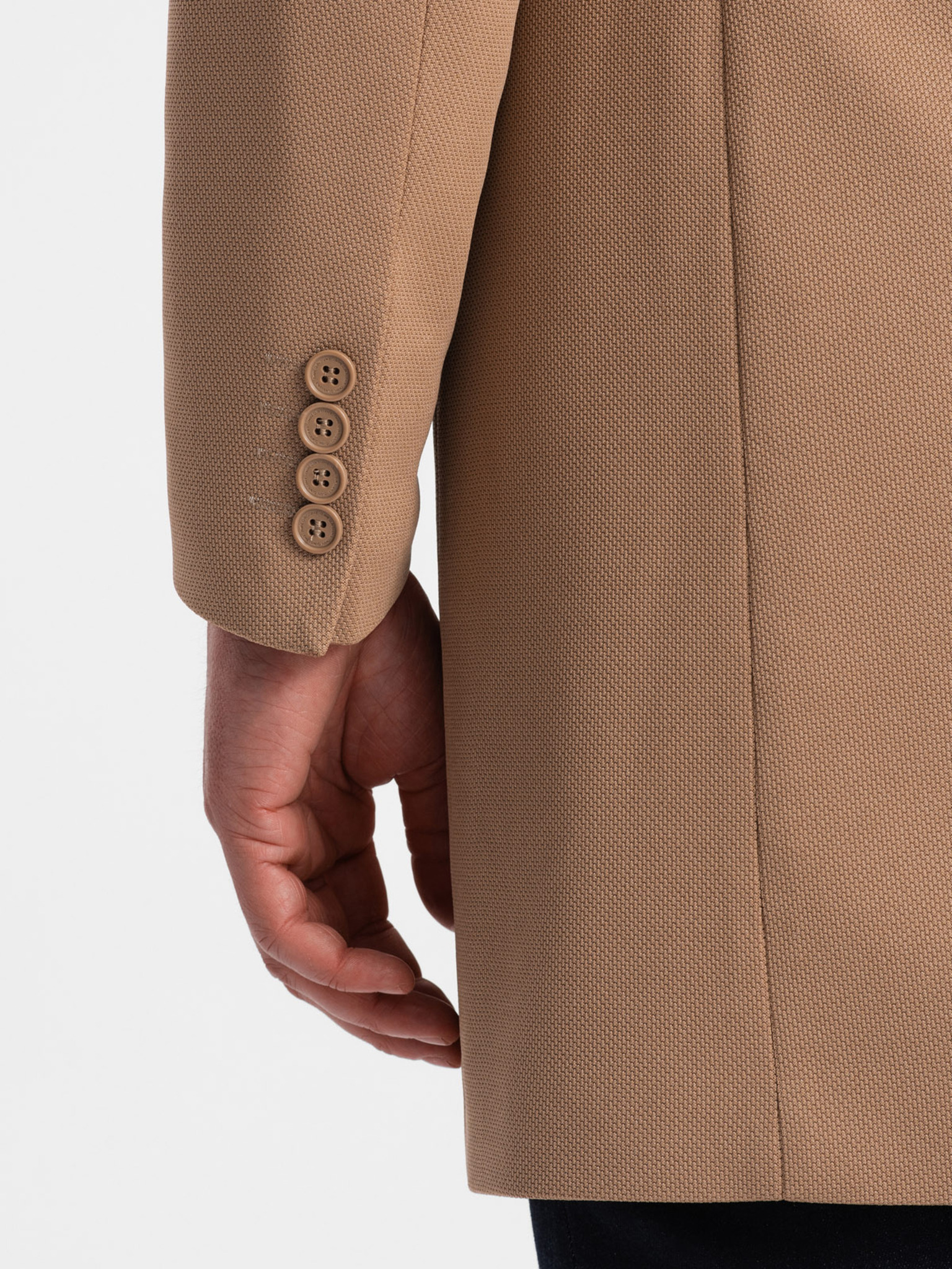 Férfi strukturált kabát magas nyakkivágással - világos barna V4 OM-COWC-0136 Ombre Clothing