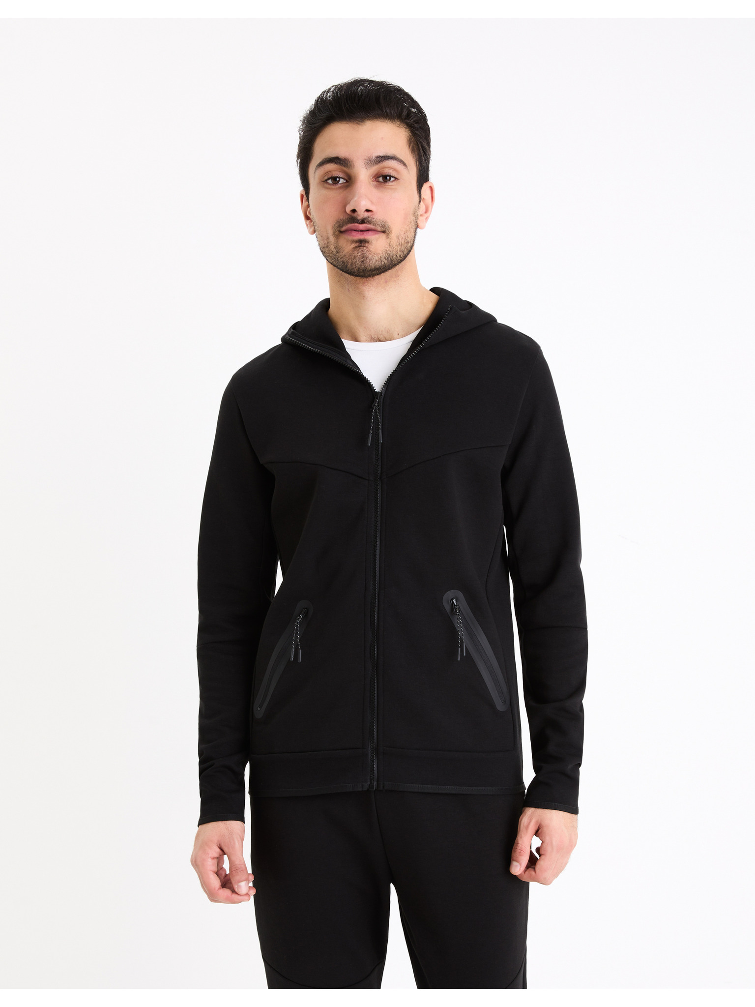 Sötétkék férfi kapucnis cipzáras melegítőpulcsi Celio Fethree