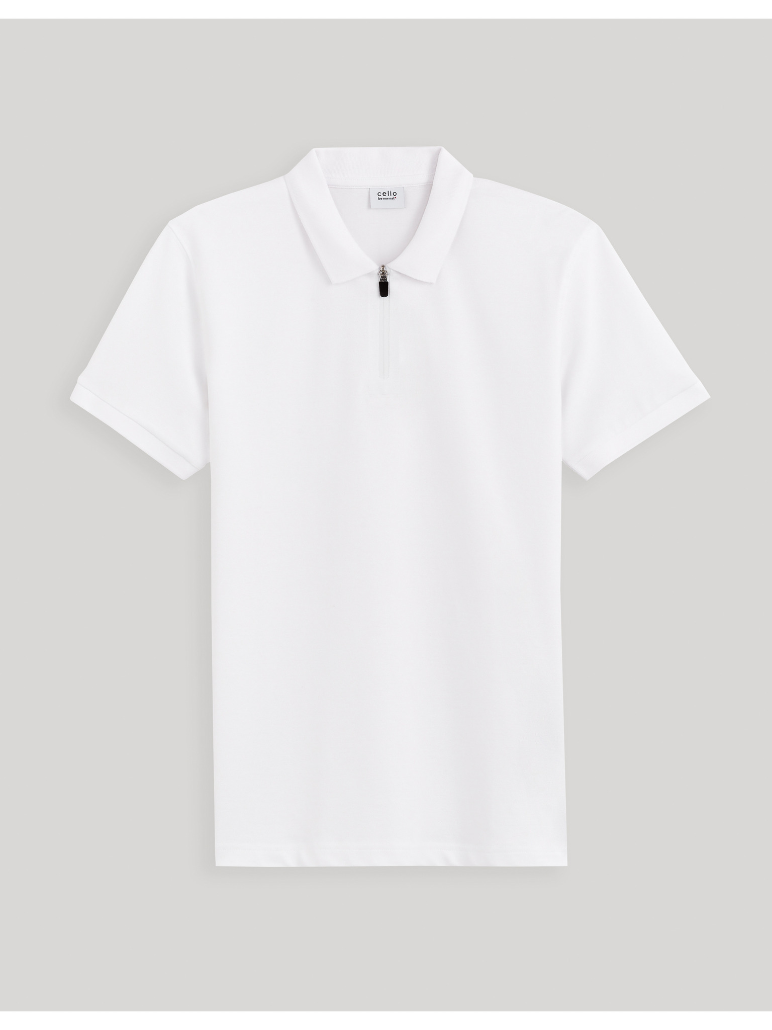 Férfi cipzáros gallérú polo póló - fehér