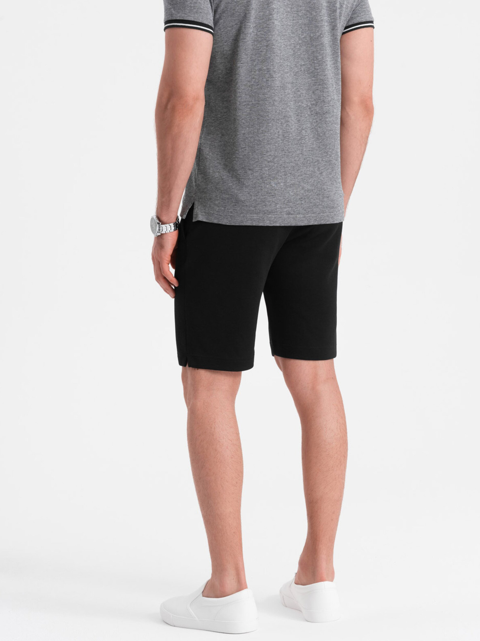 Férfi melegítő rövidnadrág szegéllyel és bordás derékkal - szürke melír