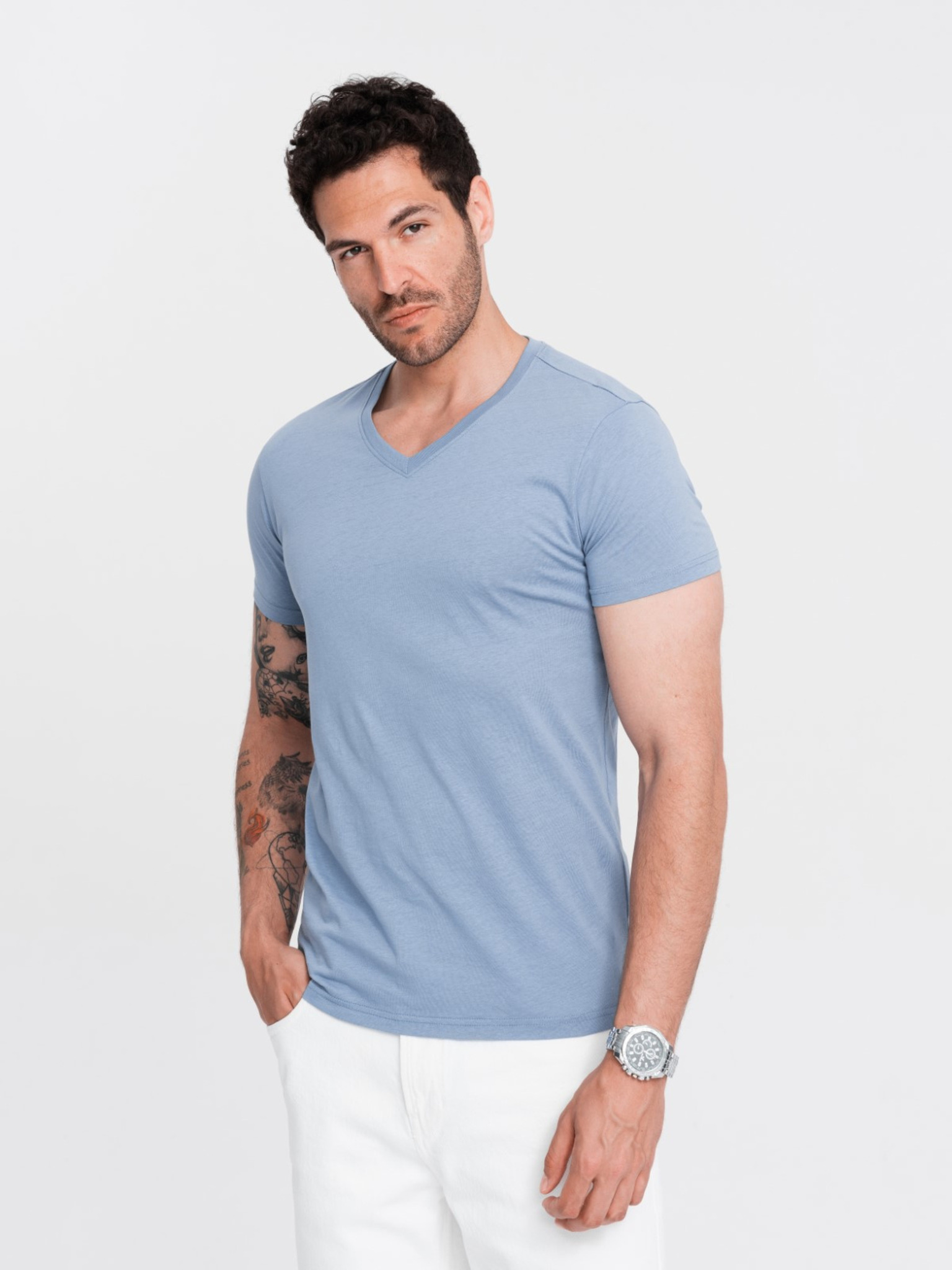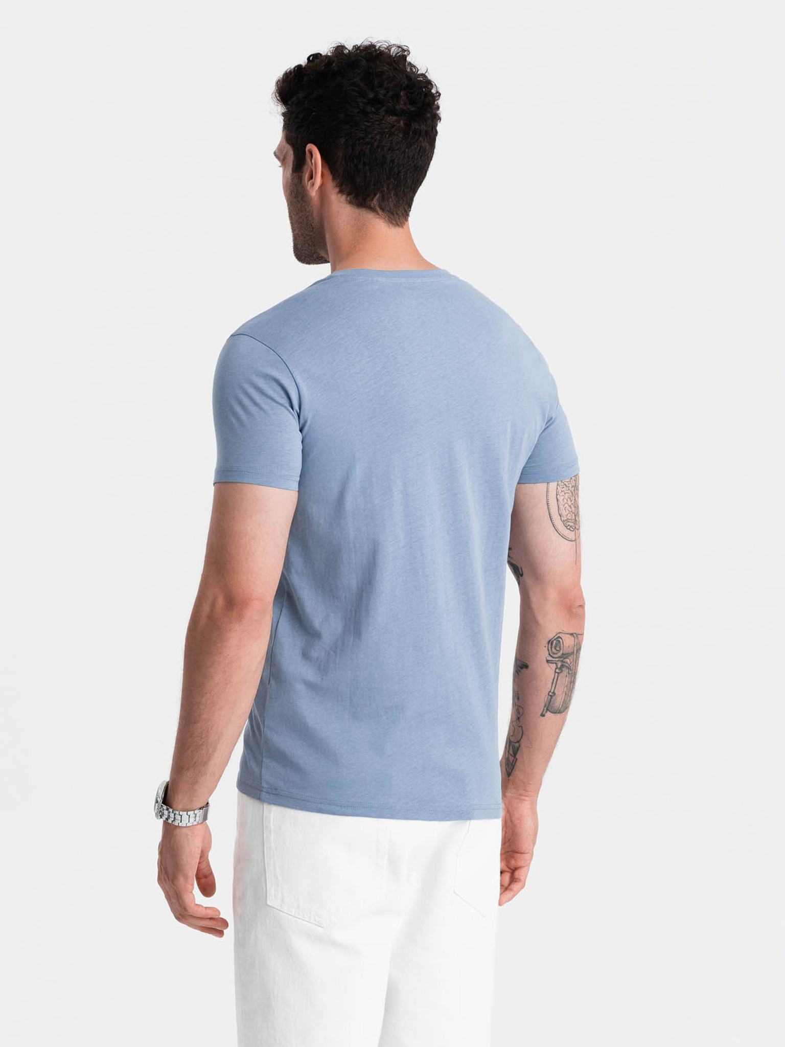 Férfi kis nyomatú póló a mellkason - fehér V3 OM-TSPT-0258 Ombre Clothing