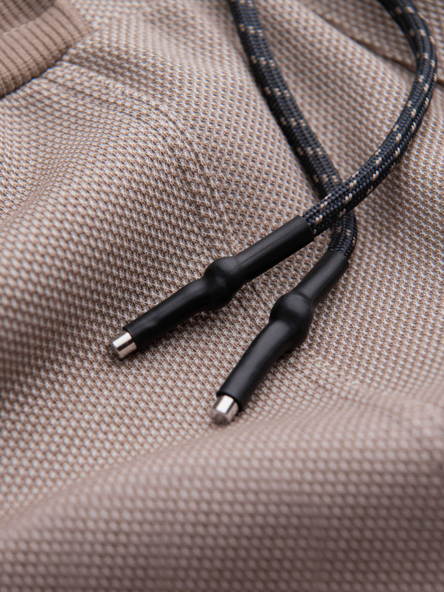 Férfi tréningnadrág bordázott mandzsettával és díszes cipzárral - homok Ombre Clothing