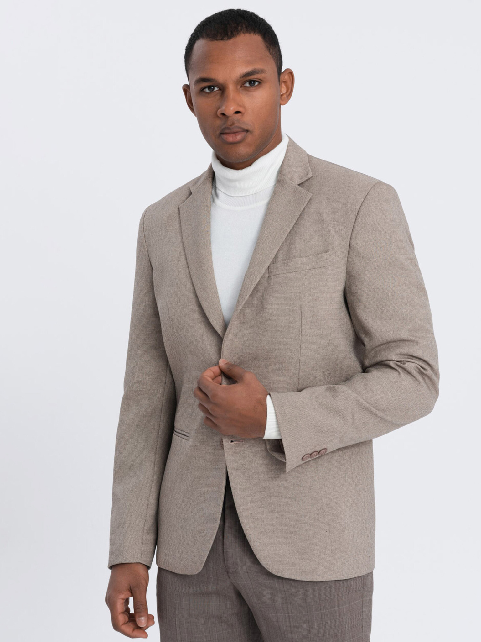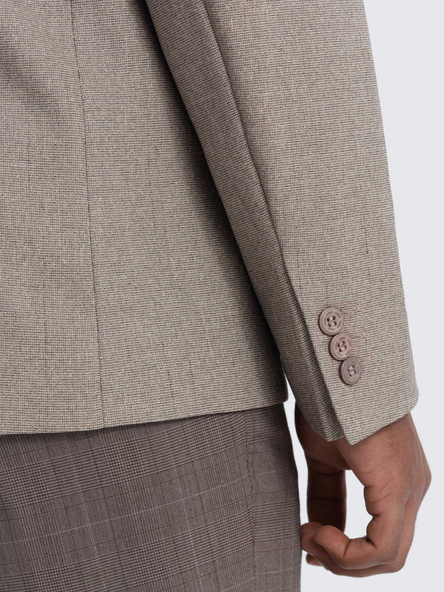 Férfi bézs zakó SLIM finom strukturált kötéssel