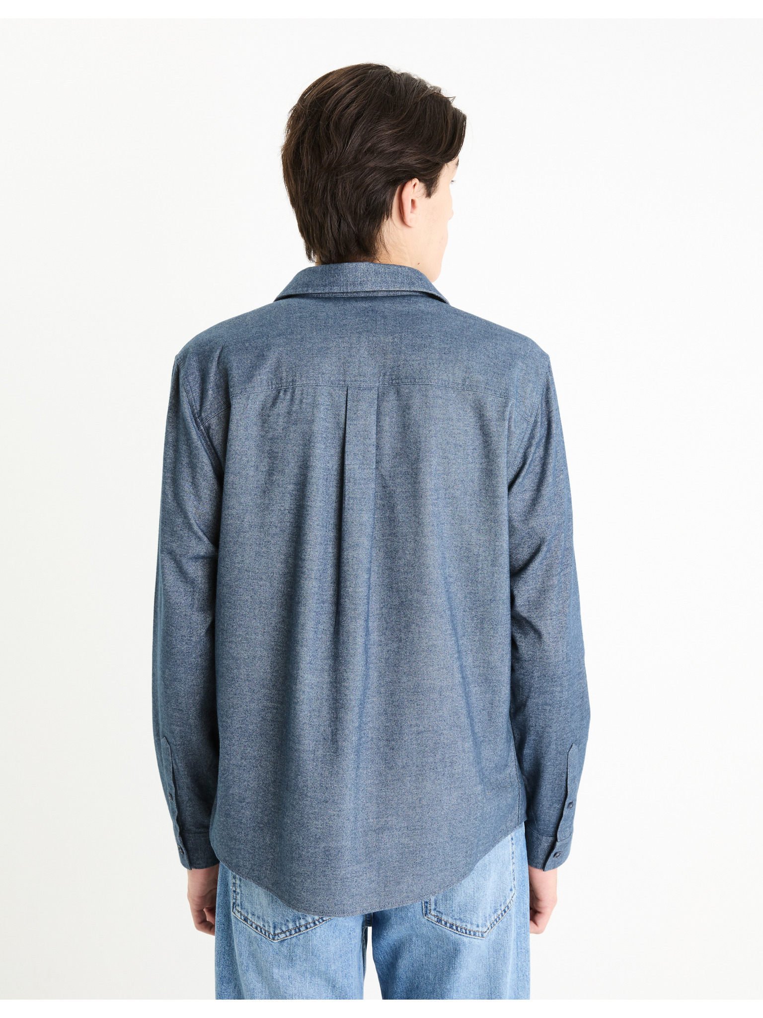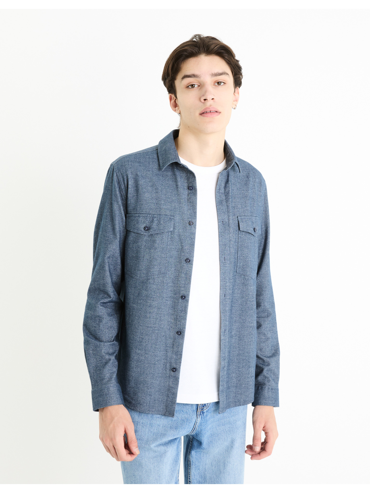 Férfi mintás finom farmer ing zsebbel - világoskék Ombre Clothing