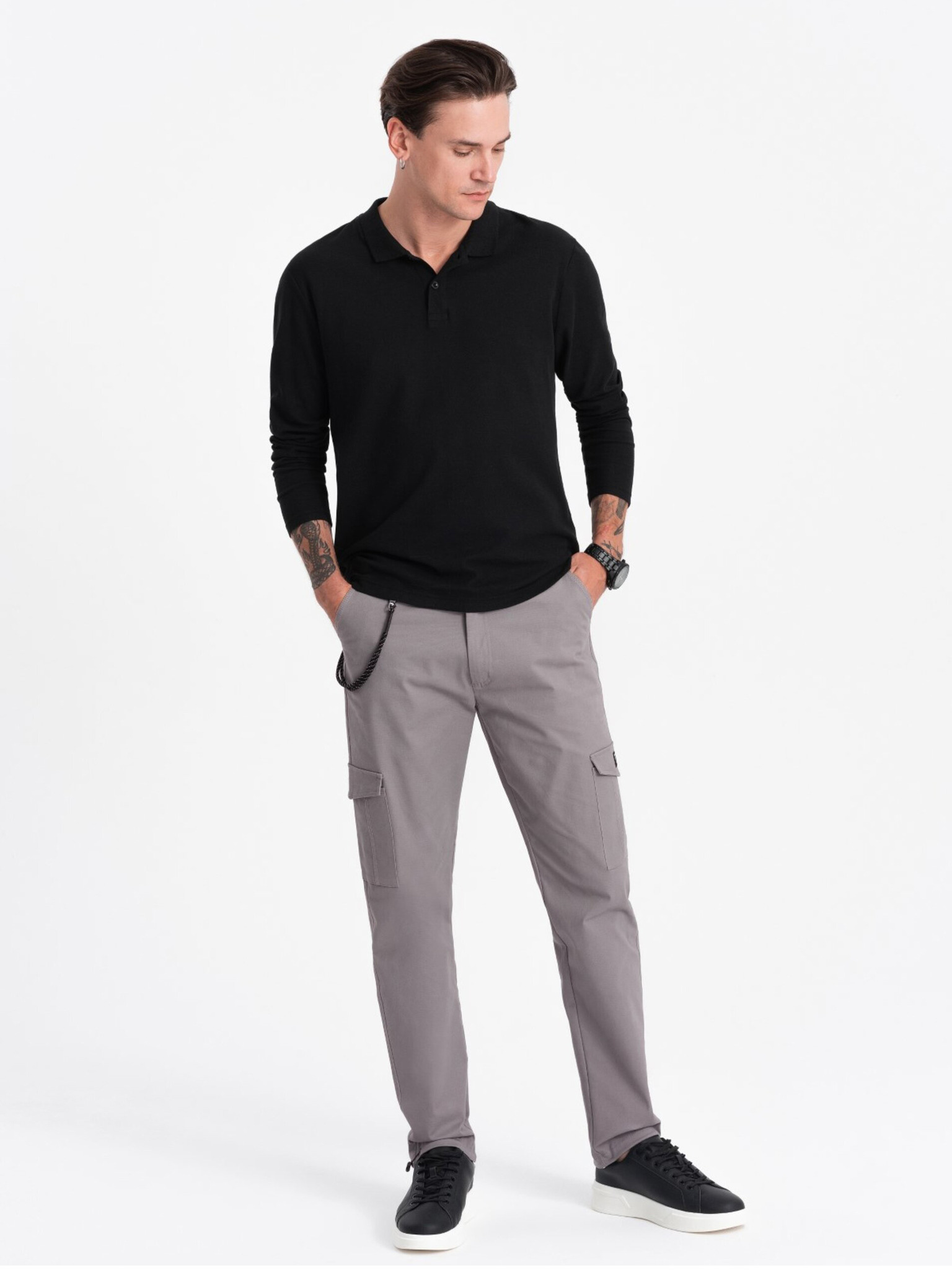 Férfi JOGGERY nadrág cipzáras cargo zsebekkel szürke Ombre Ruházat Ombre Ruházat
