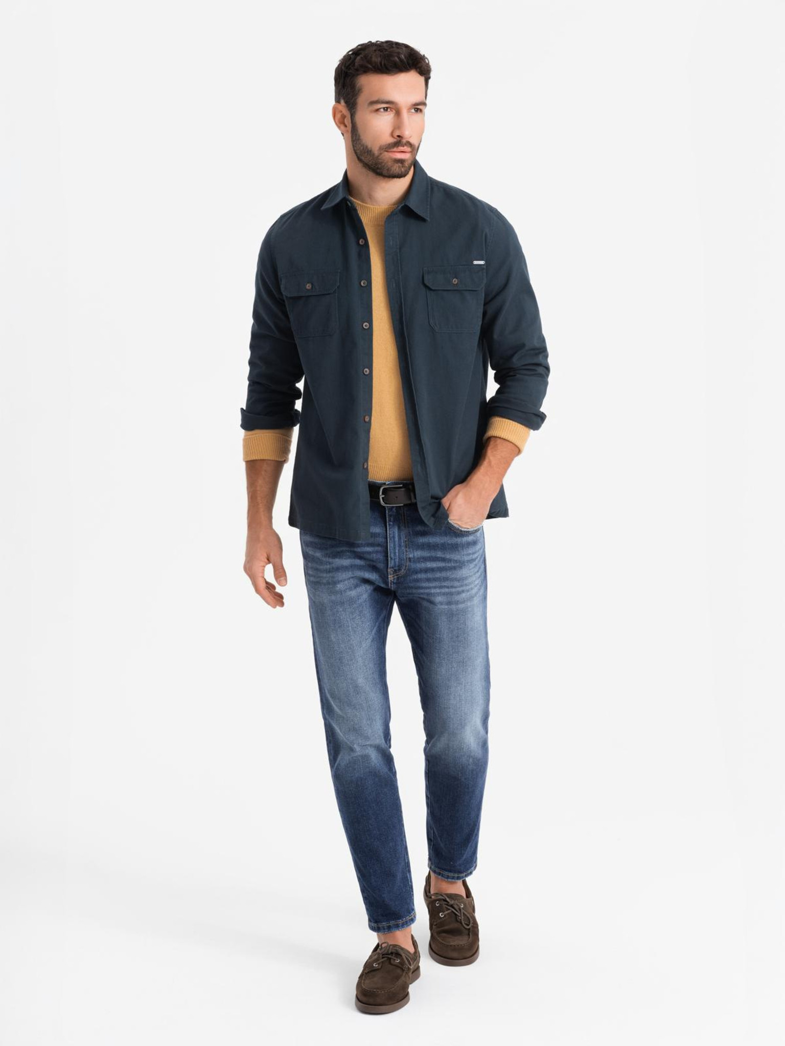 Férfi farmer ing gombokkal és zsebekkal - kék V2 OM-SHDS-0210 Ombre Clothing