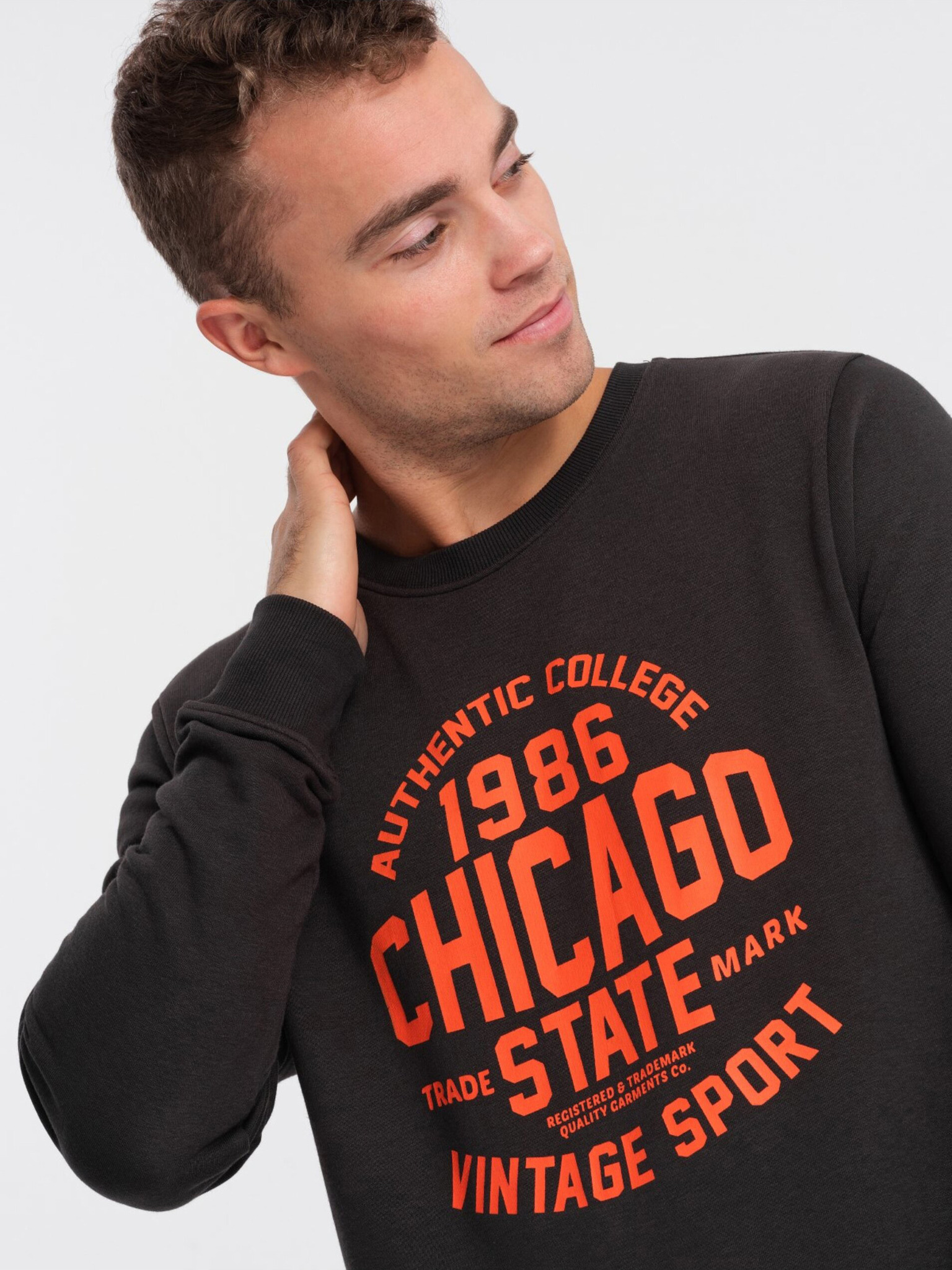 Ombre Clothing mosott férfi pulóver díszvarrással a nyakkivágásnál