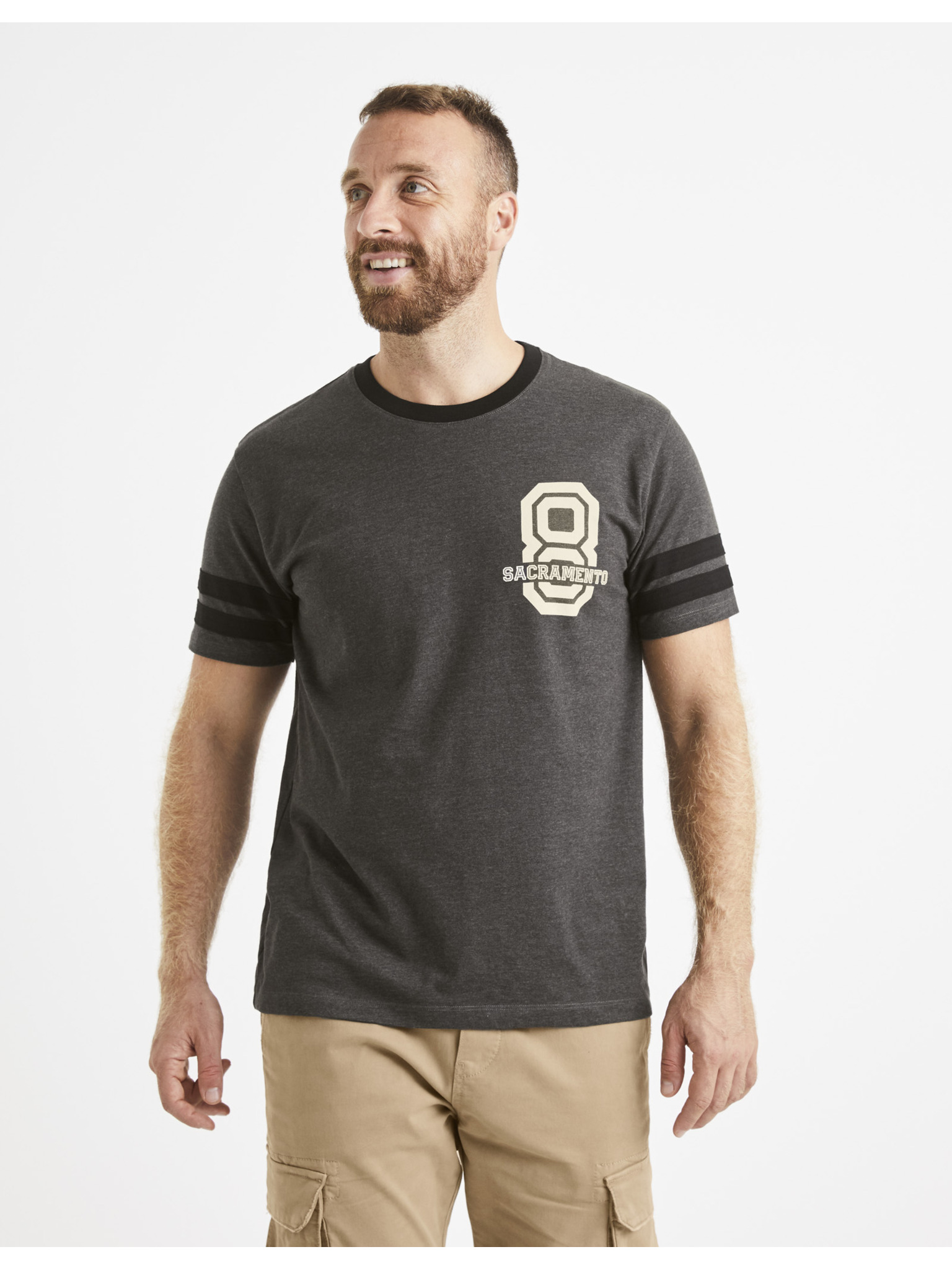 Sötétszürke férfi nyomtatott póló Celio