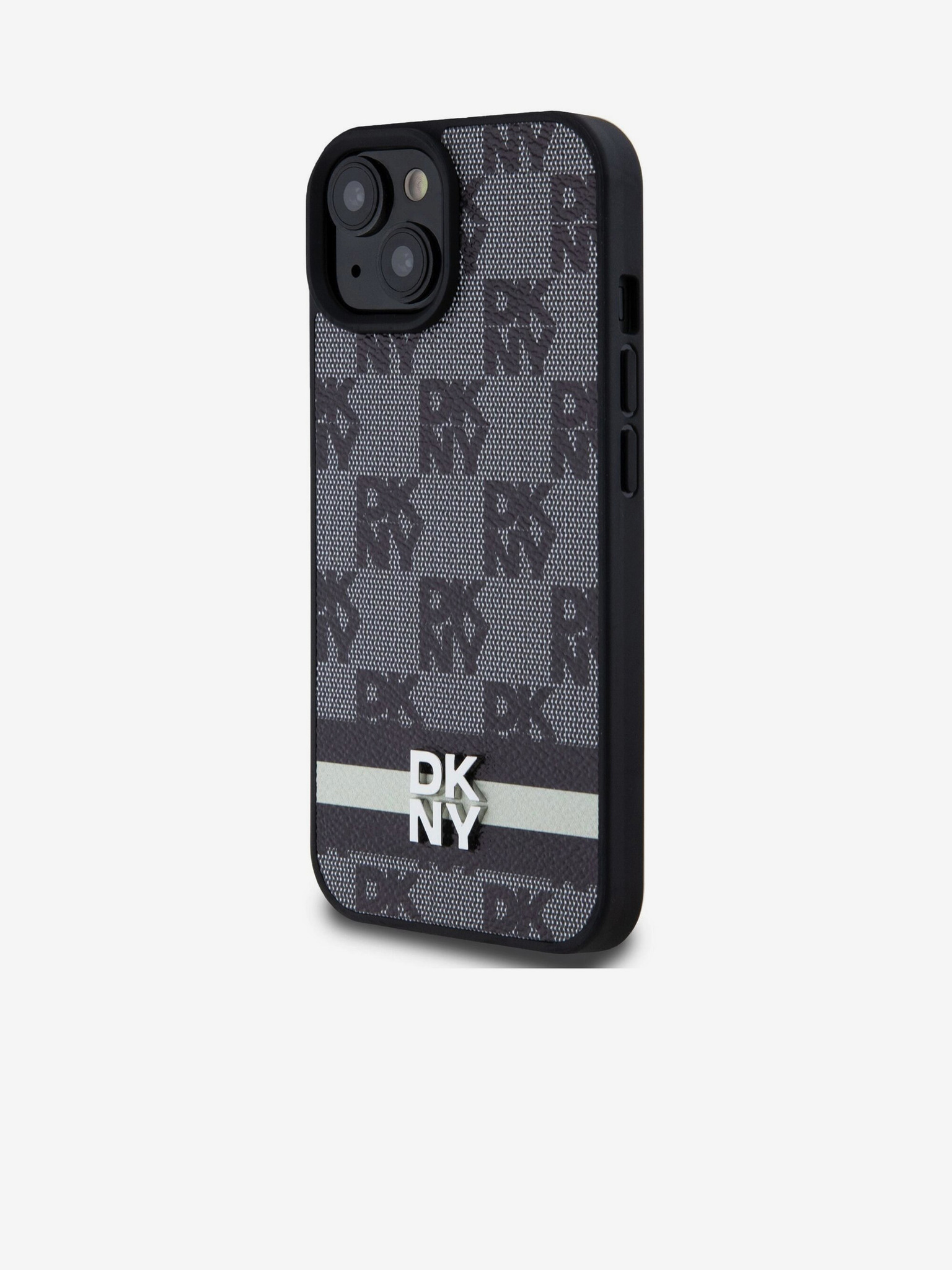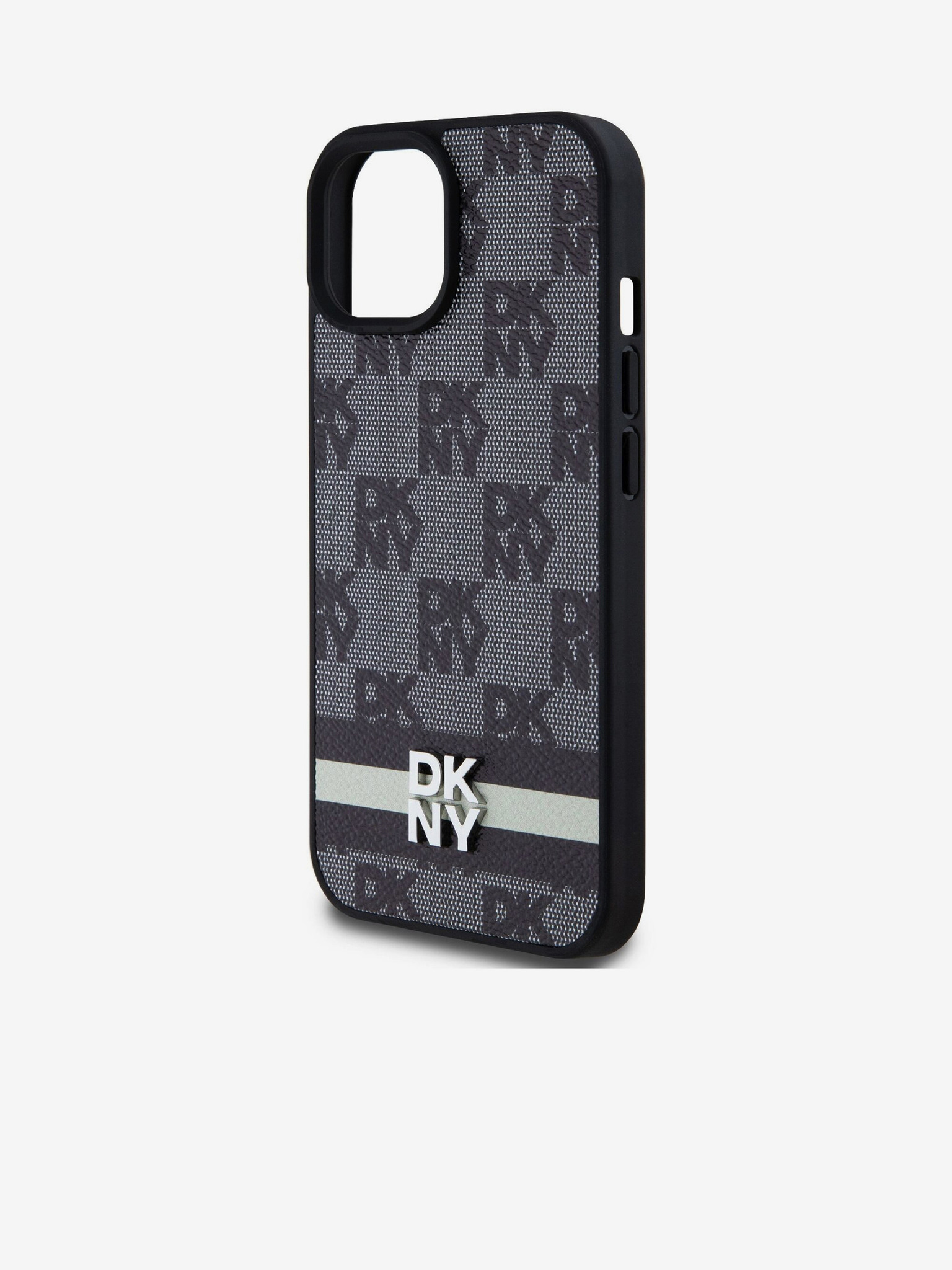DKNY PC/TPU ismétlődő mintás, tónusos csíkos Magsafe hátlap iPhone 16-hoz Fekete