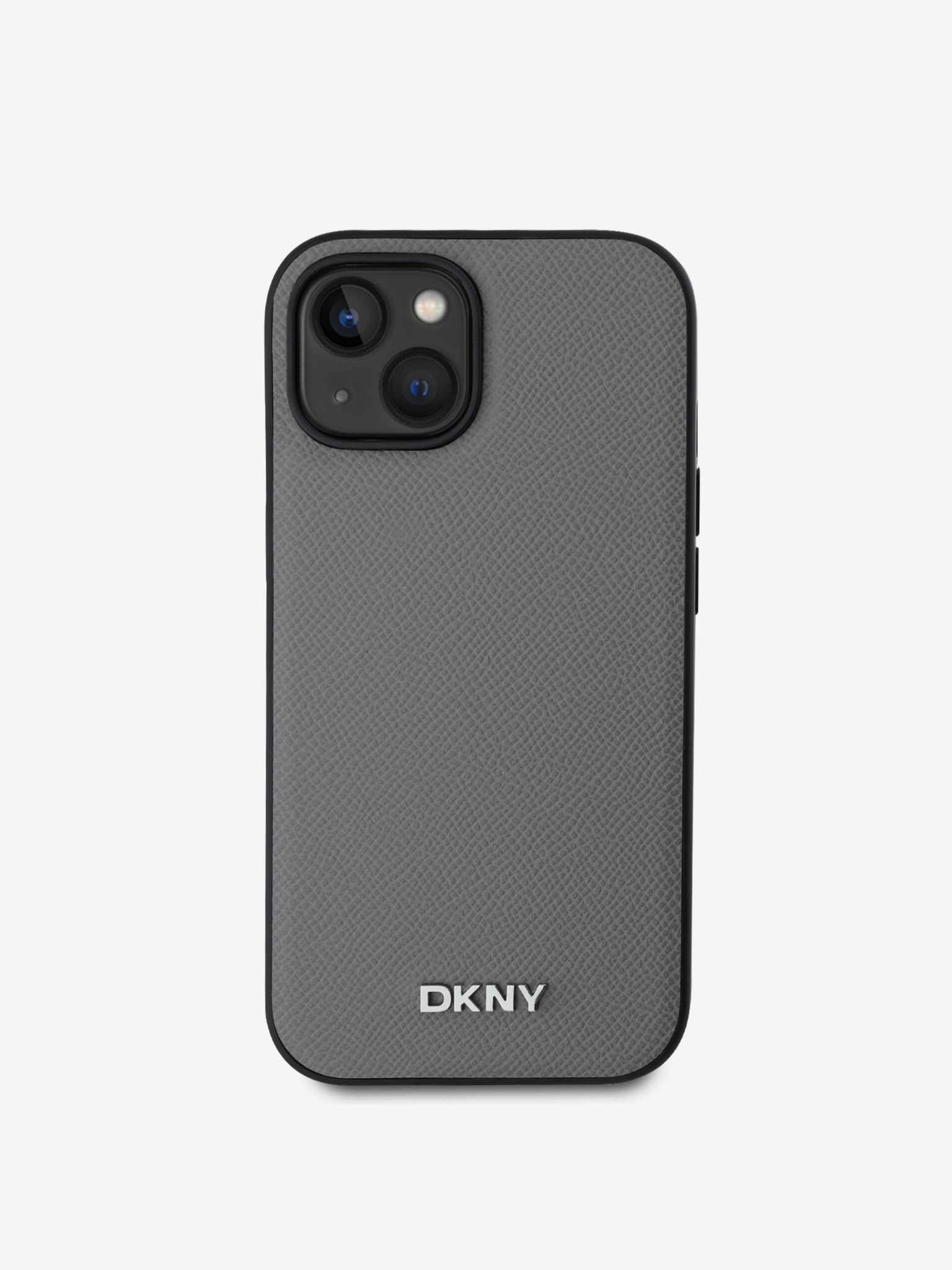 PU bőr ezüst fém logós Magsafe hátlap iPhone 14 készülékhez Szürke DKNY