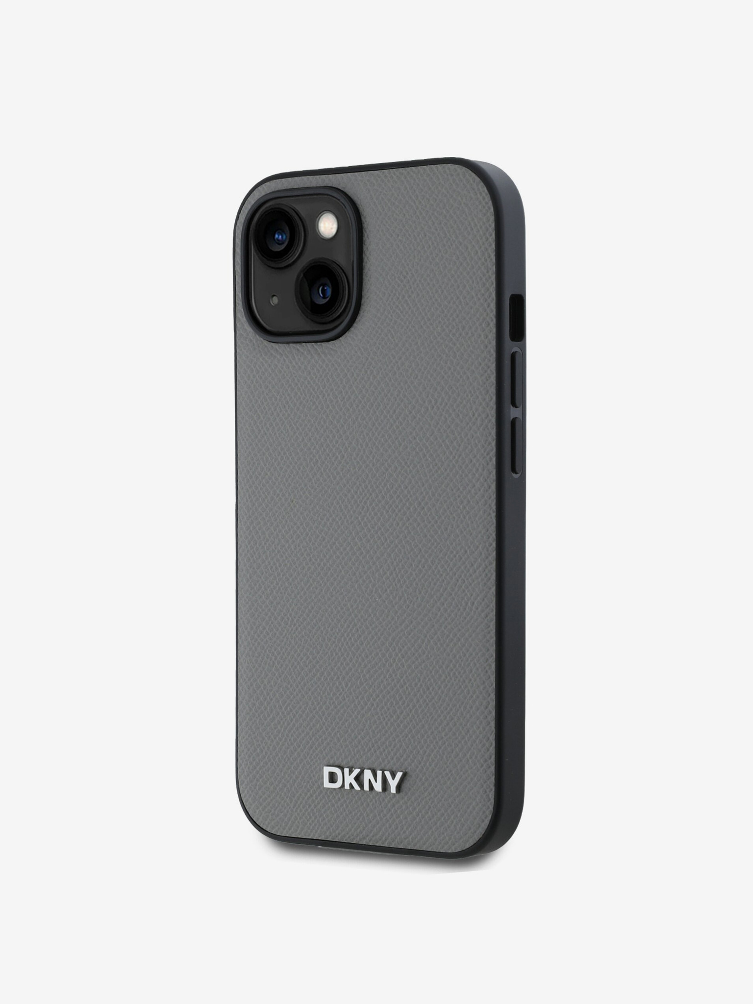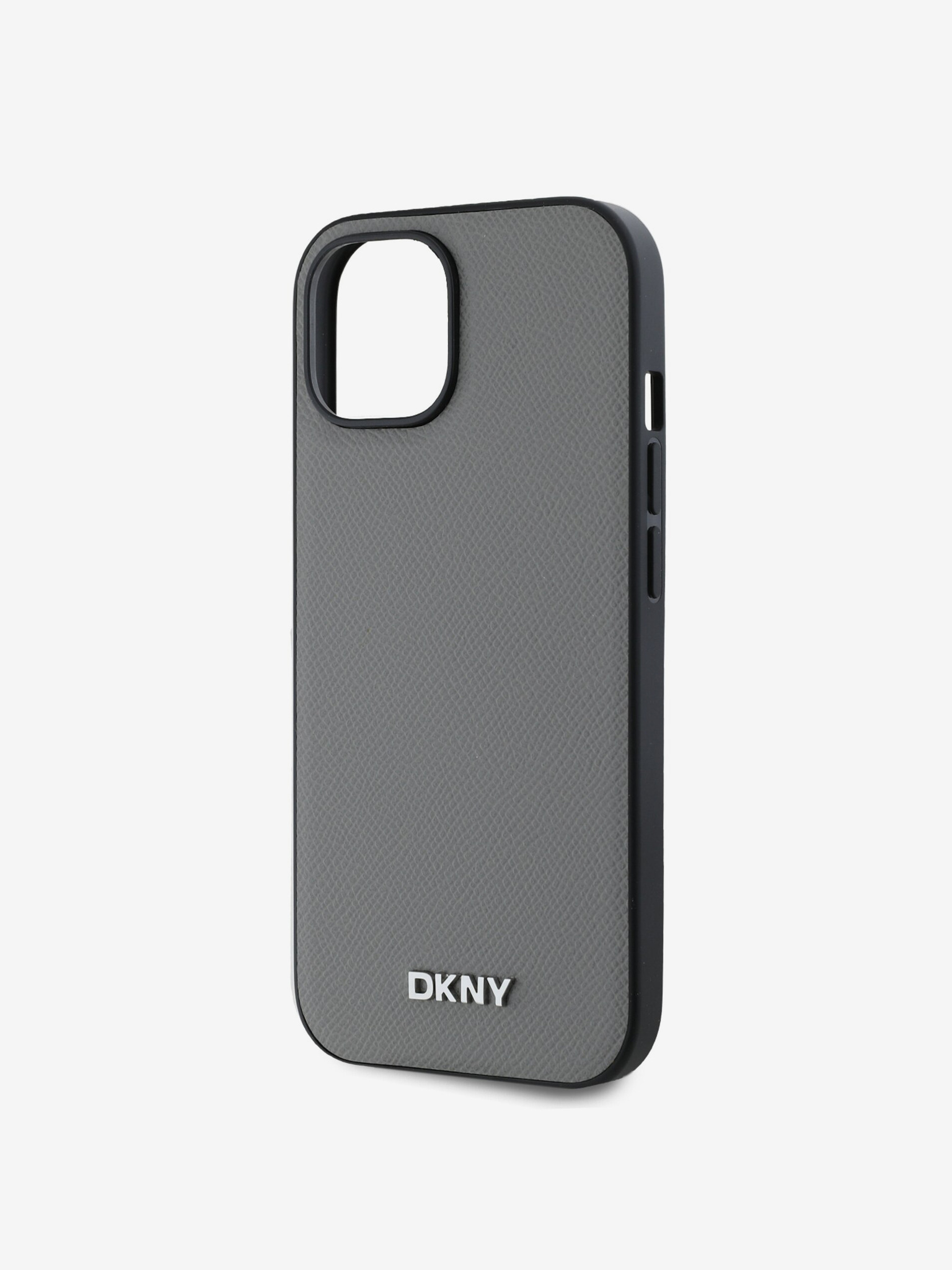 PU bőr ezüst fém logós Magsafe hátlap iPhone 15 készülékhez szürke DKNY DKNY