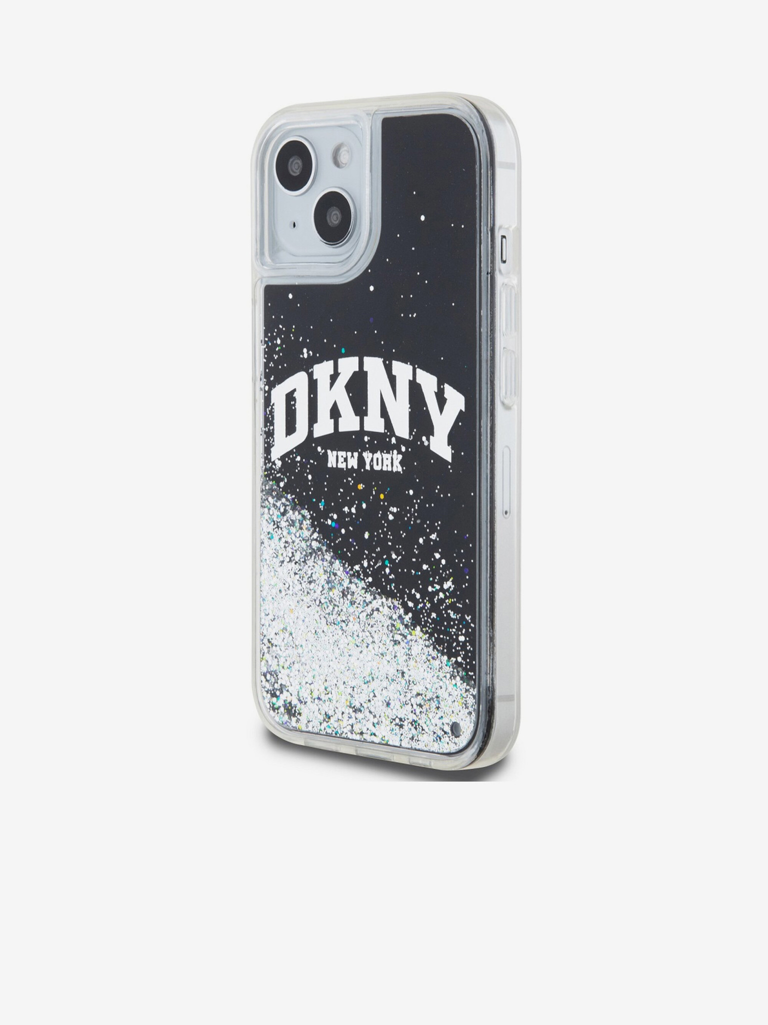 Folyékony csillámos, íves logós hátlap iPhone 14 készülékhez Fekete DKNY