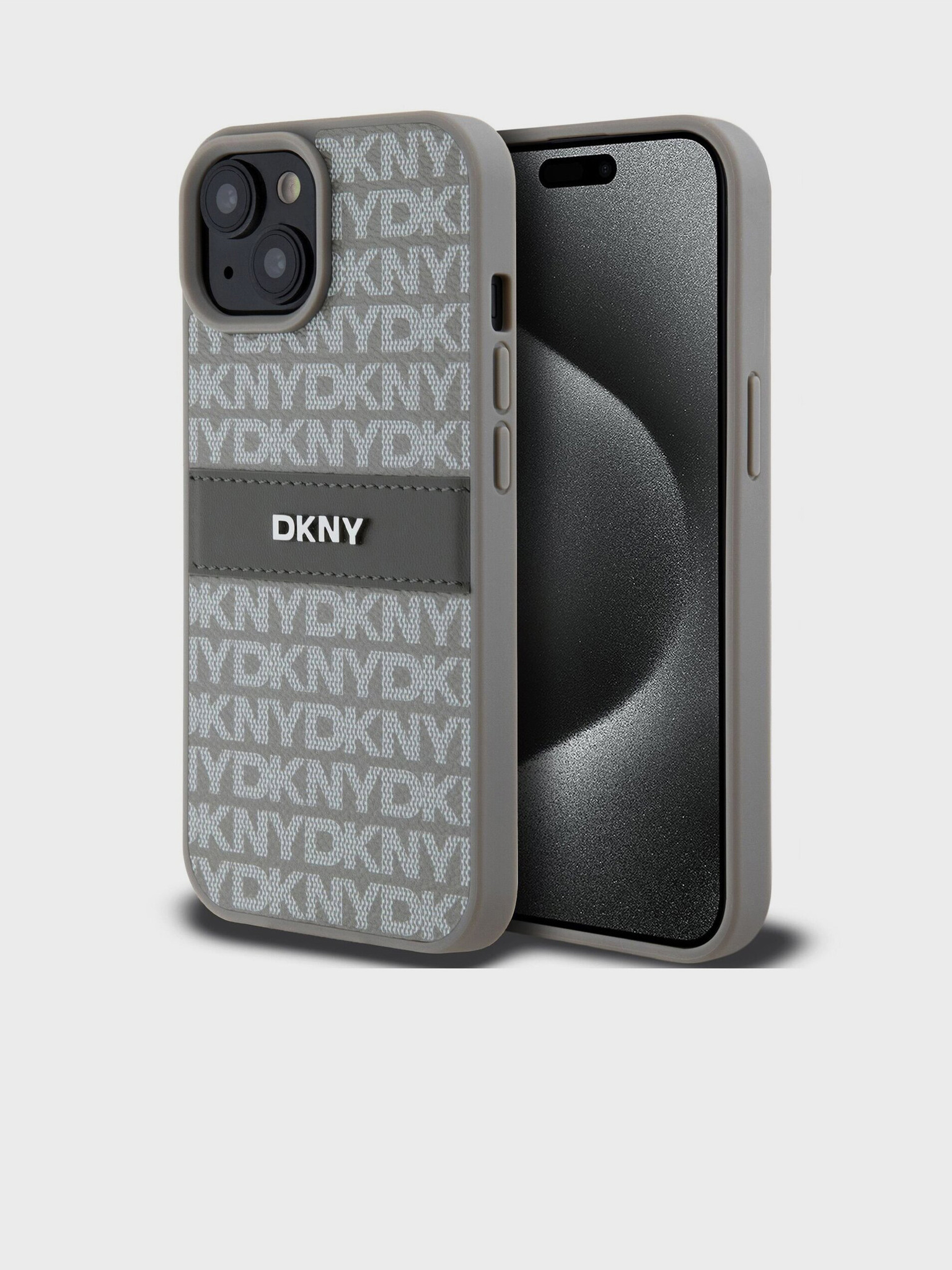 PU bőr ismétlődő mintás, tónusos csíkos hátlap iPhone 15 Pro bézs DKNY DKNY