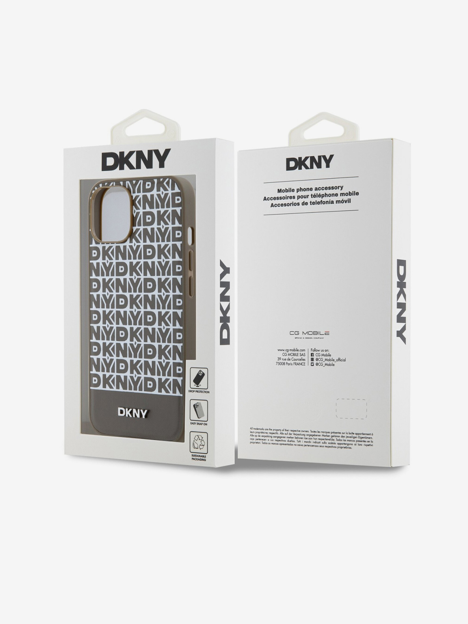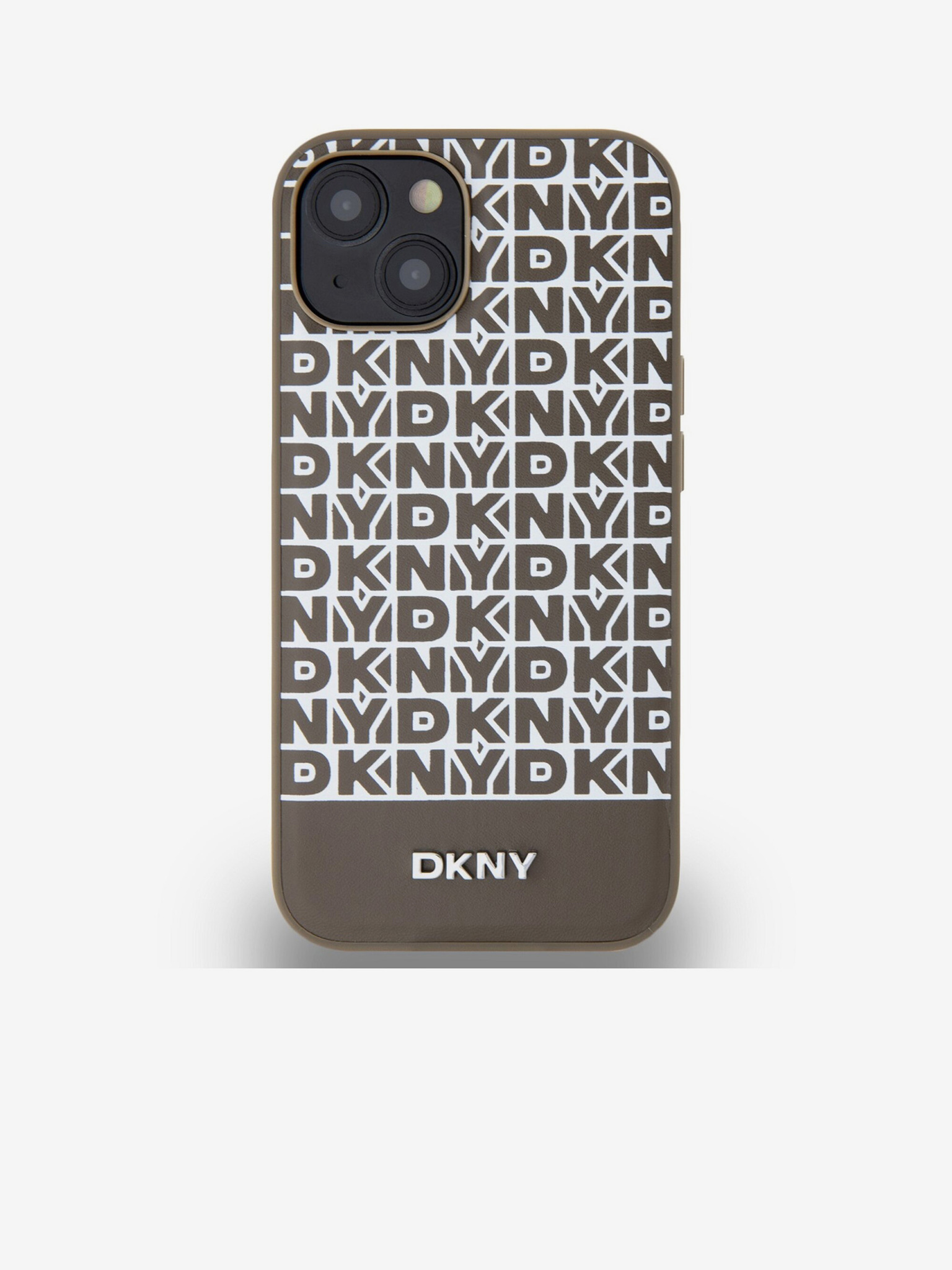 DKNY PU bőr ismétlődő mintás tonális csíkos hátlapi borító iPhone 16 Pro Max bézs színűhöz
