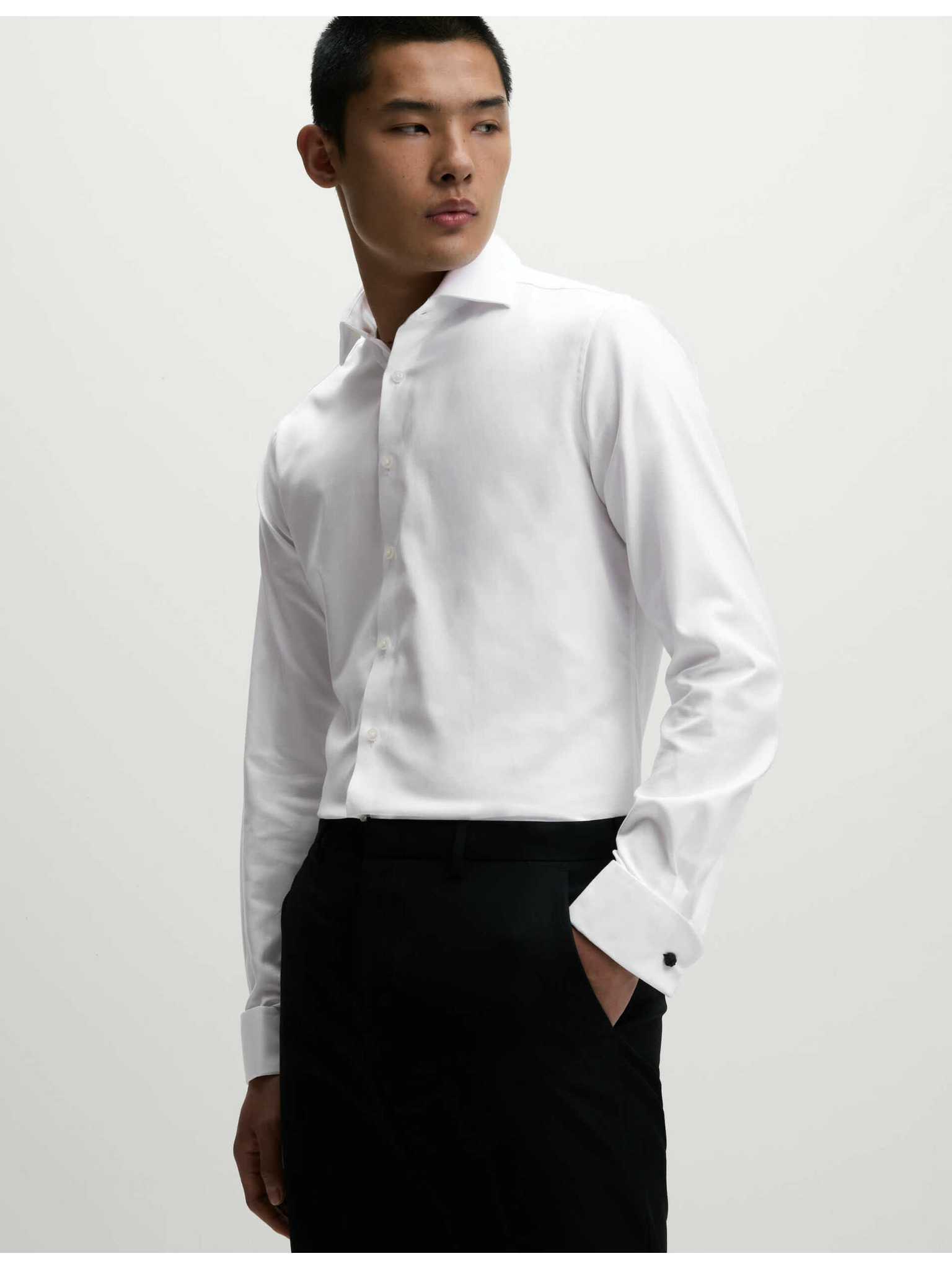 Enyhén szabott ing luxus pamutból, dupla mandzsettával Marks & Spencer fehér