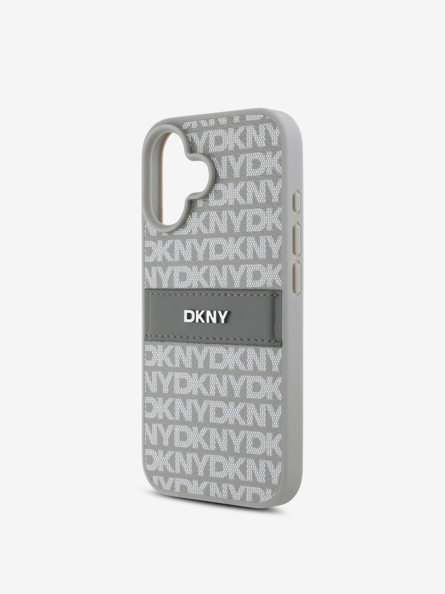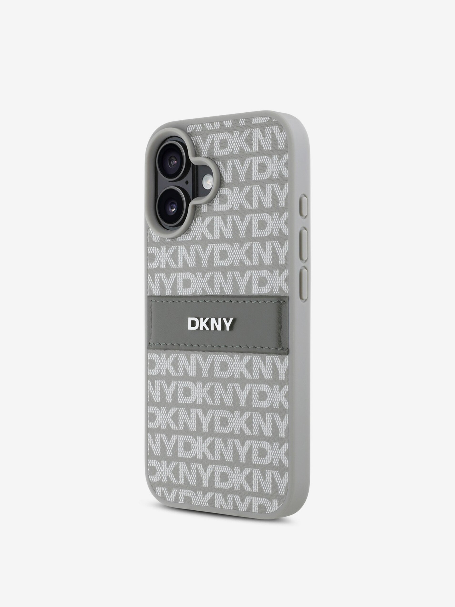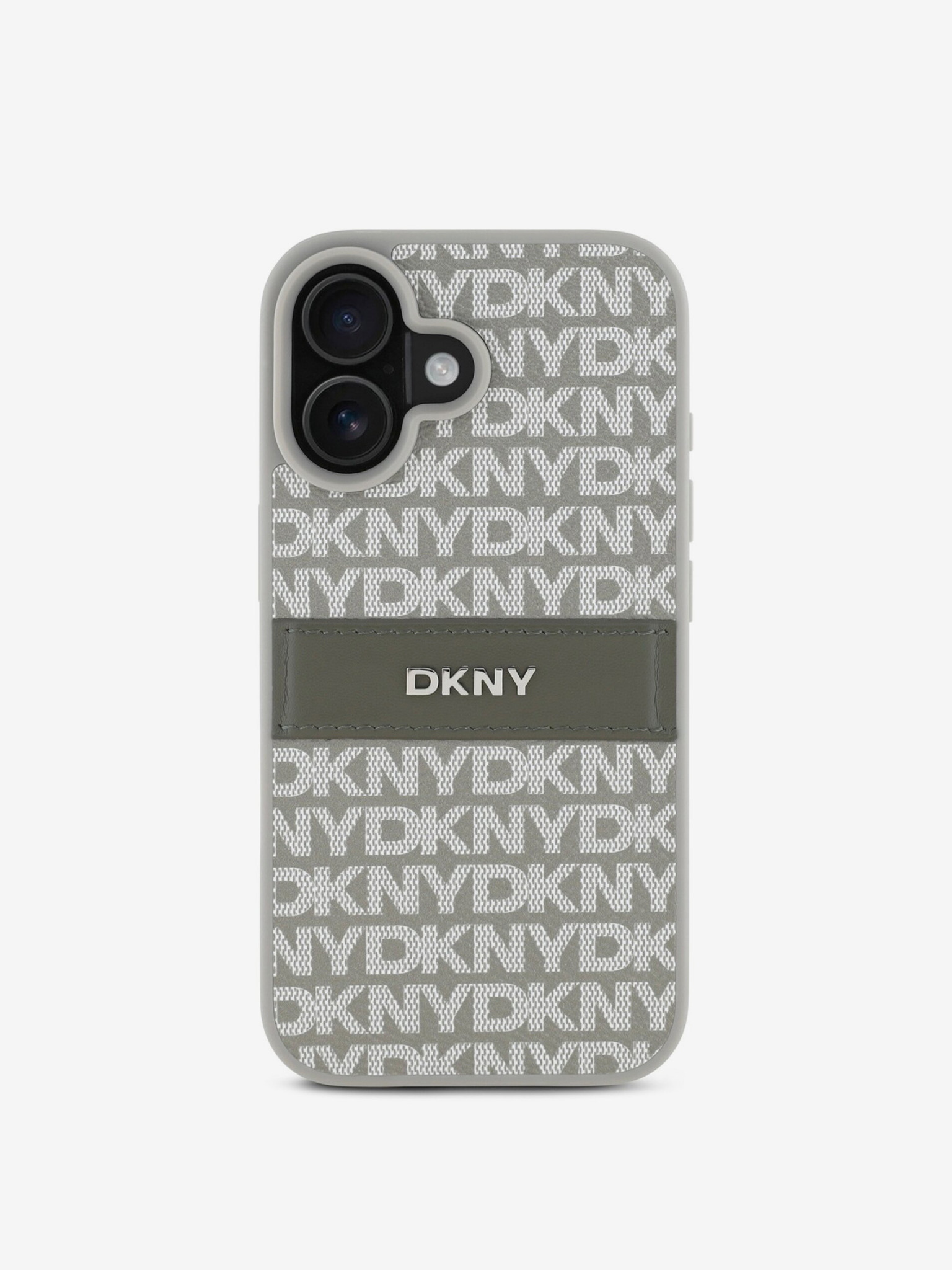 DKNY PU bőr ismétlődő mintás tonális csíkos hátlapi borító iPhone 16 Pro Max bézs színűhöz