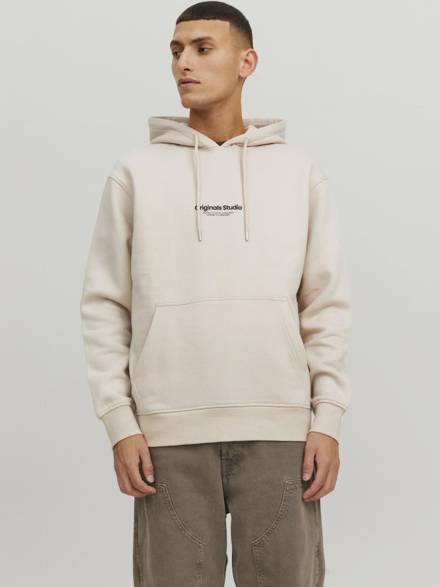 Bézs színű férfi kenguru kapucnis kapucnis pulóver Ombre Clothing