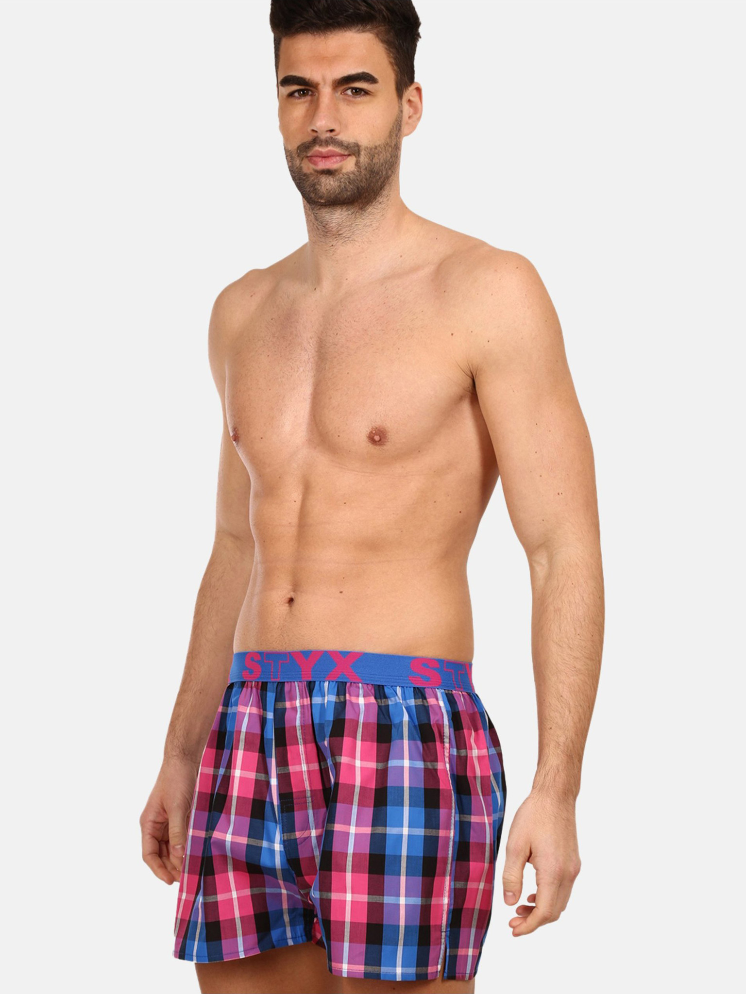 Kék és rózsaszín férfi Styx kockás rövidnadrágok