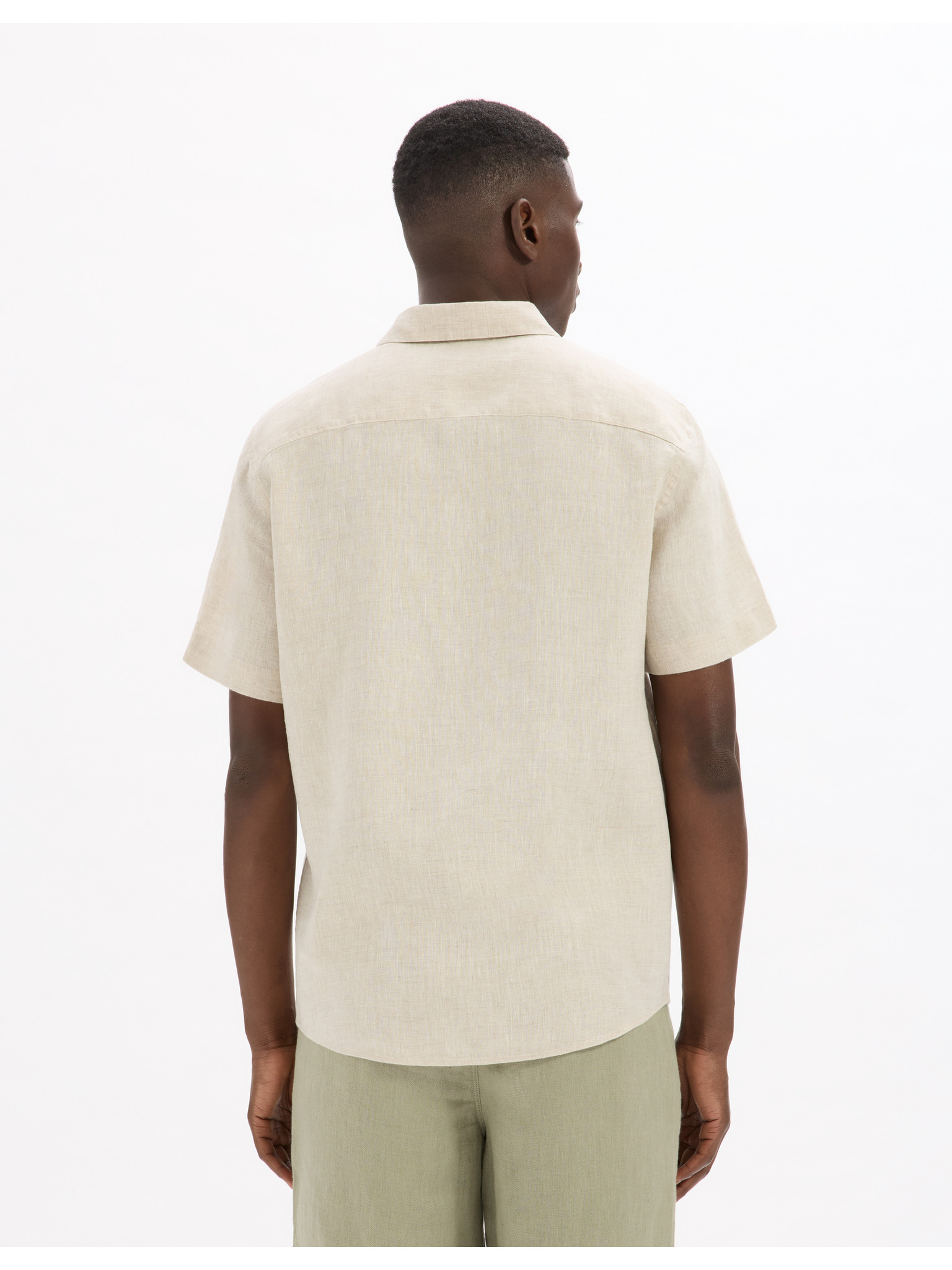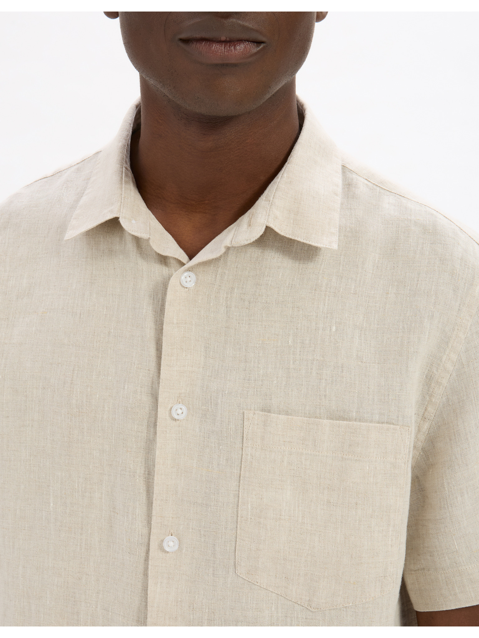 Cream férfi rövid ujjú lenvászon ing Jack & Jones Faro