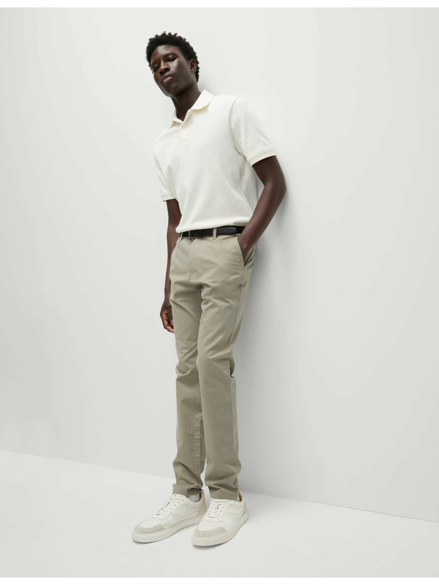 Bézs színű férfi chino nadrág dekoratív övvel Ombre Clothing