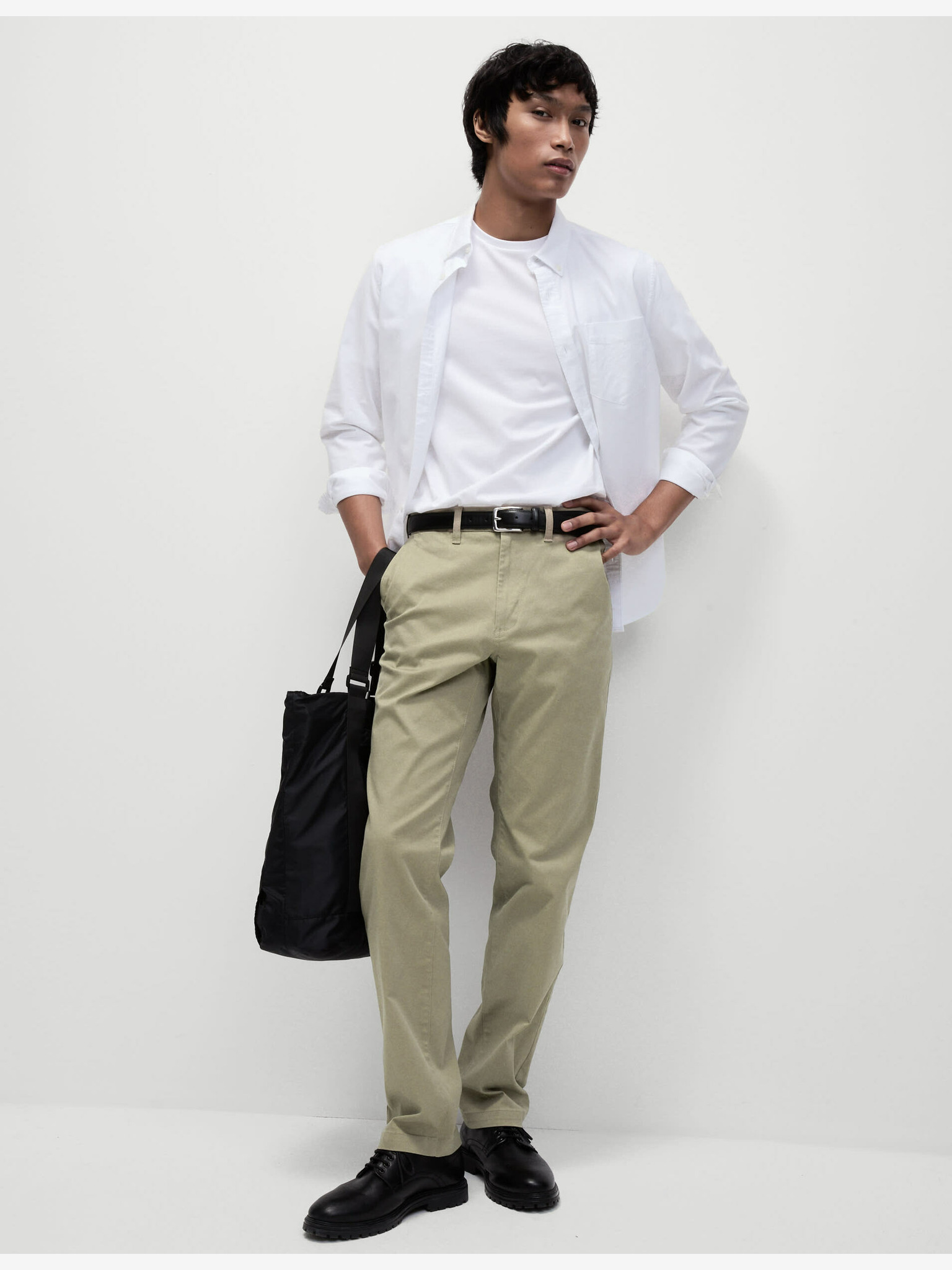 Bézs színű férfi chino nadrág dekoratív övvel Ombre Clothing