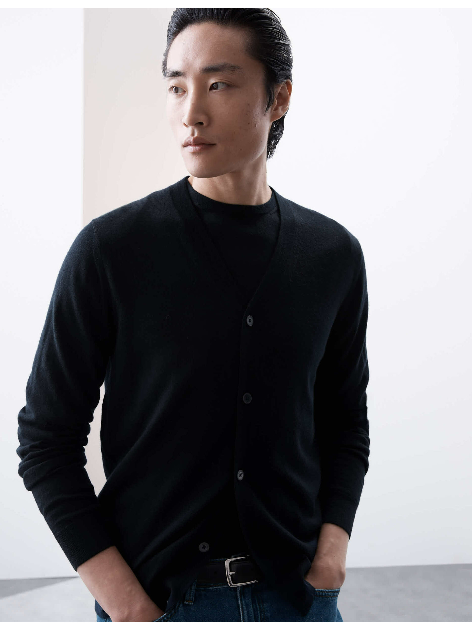 V-nyakú pulóver tiszta rendkívül finom merino gyapjúból, Marks & Spencer fekete