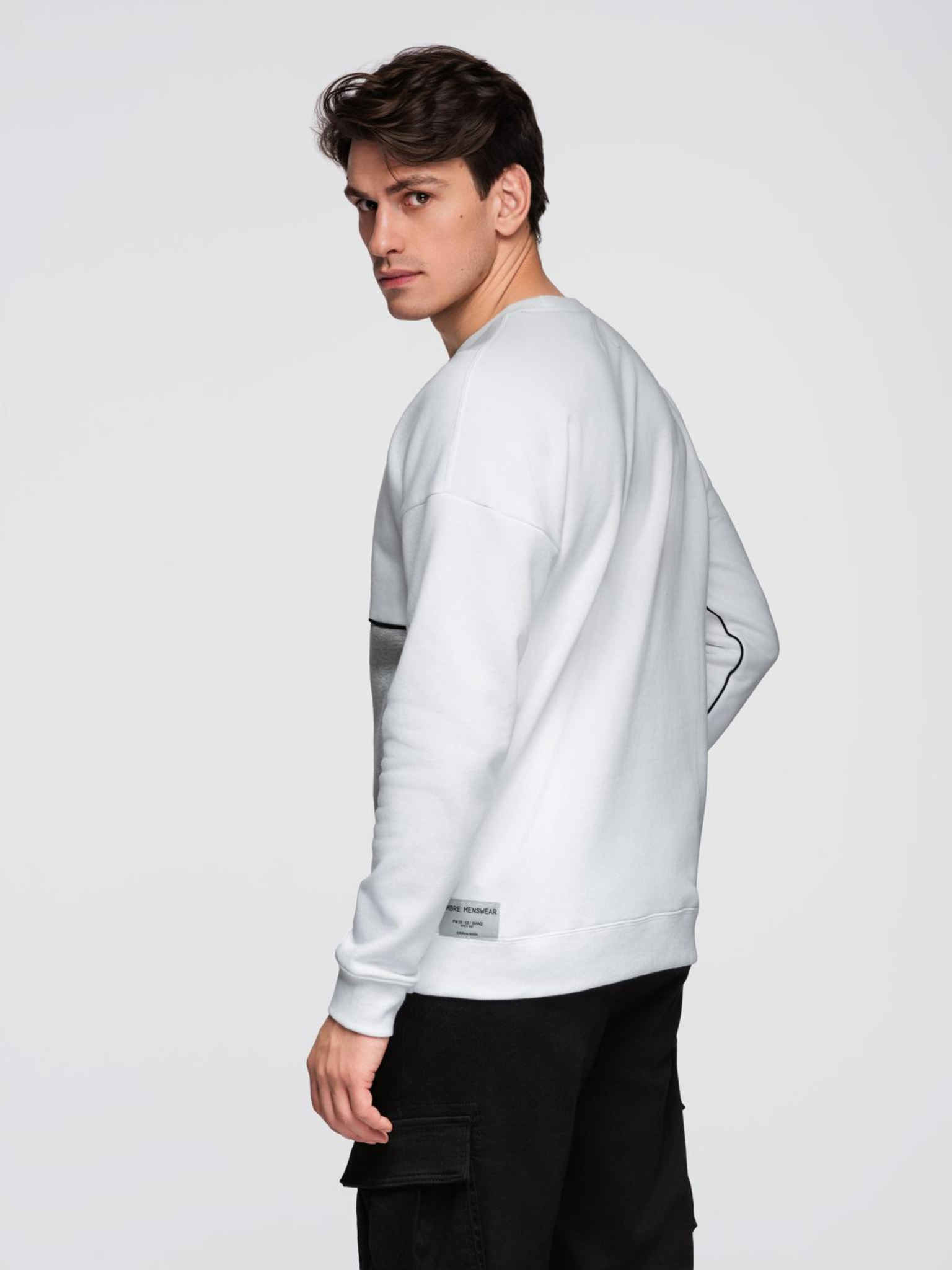 Férfi pulóver raglan ujjakkal és kontraszt részletekkel - fehér V2 OM-SSNZ-0244 Ombre Clothing