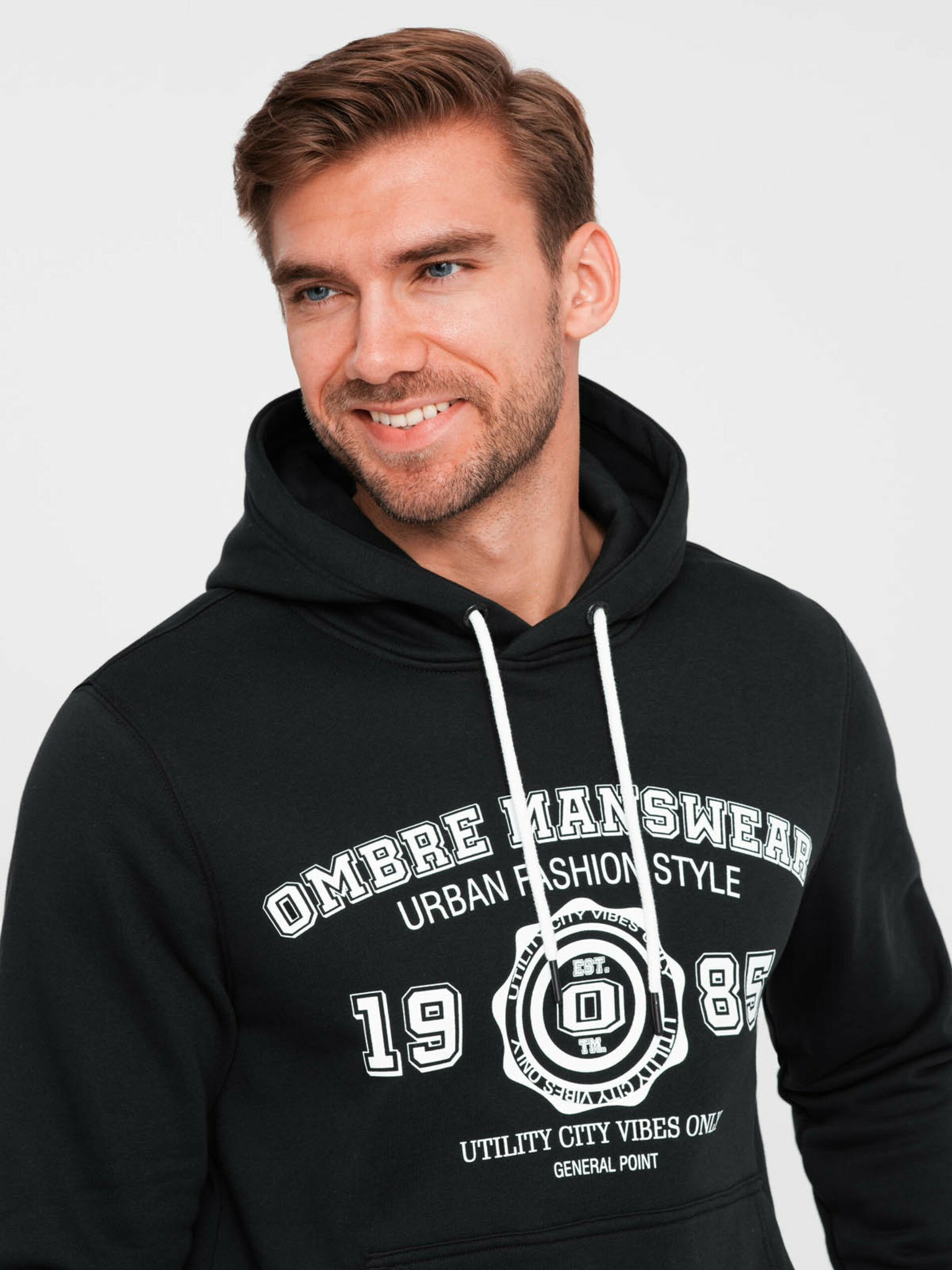 Fehér férfi nyomtatott kapucnis kapucnis pulóver Ombre Clothing
