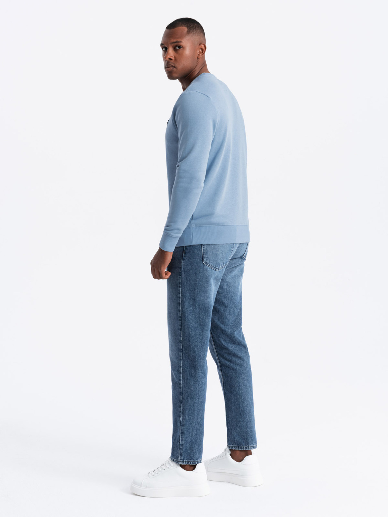Férfi melegítő szett kerek nyakú pulóver + regular fit nadrág - világos kék V7 Z122 Ombre Clothing