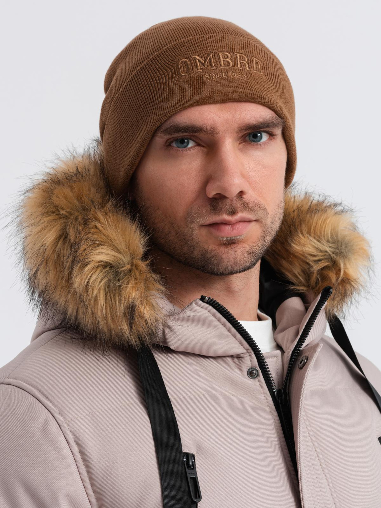 Férfi kötött sapka, hímzett Ombre Clothing felirattal