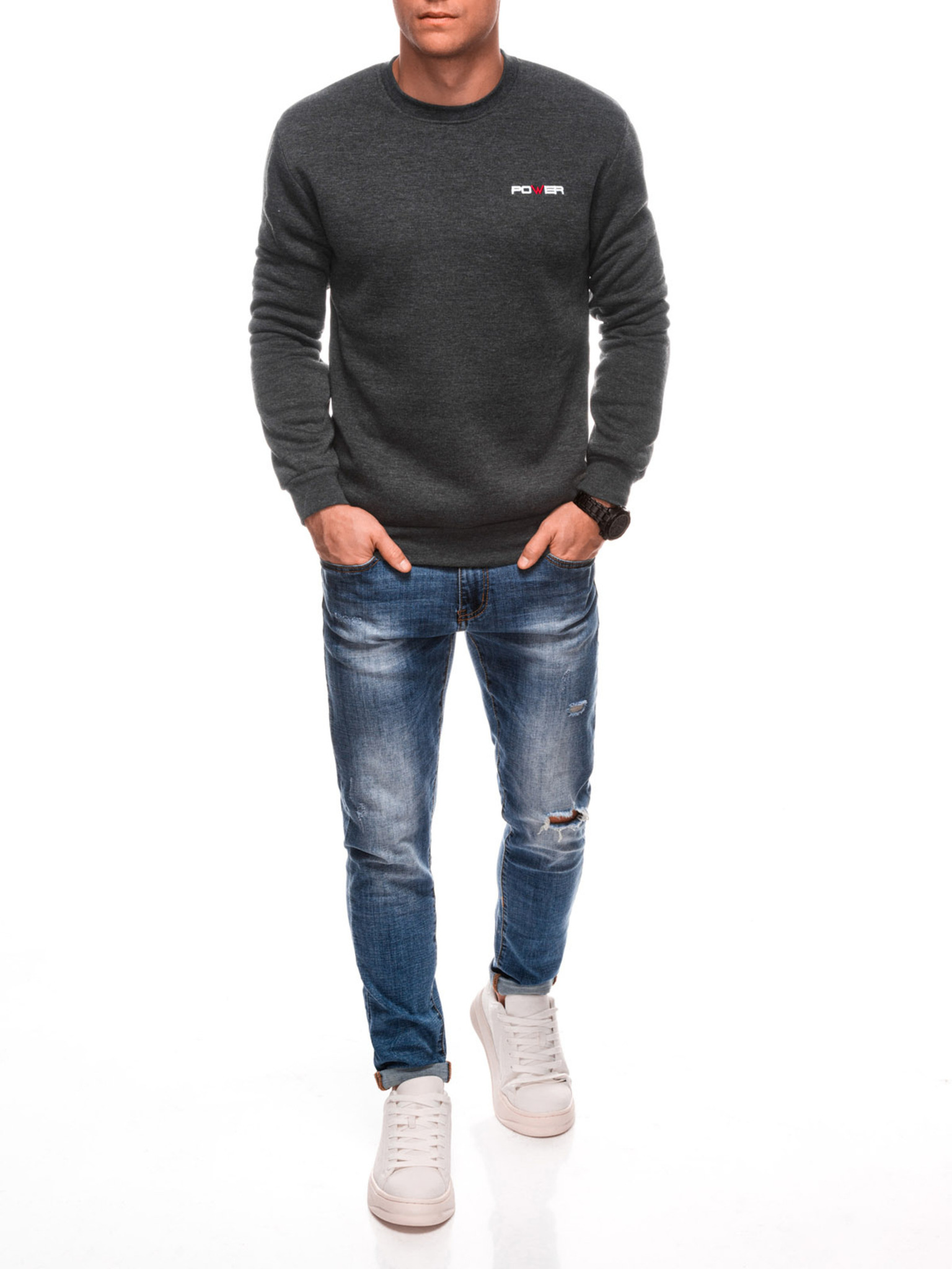Férfi egyszínű melegítőfelső BASIC kerek nyakú Edoti