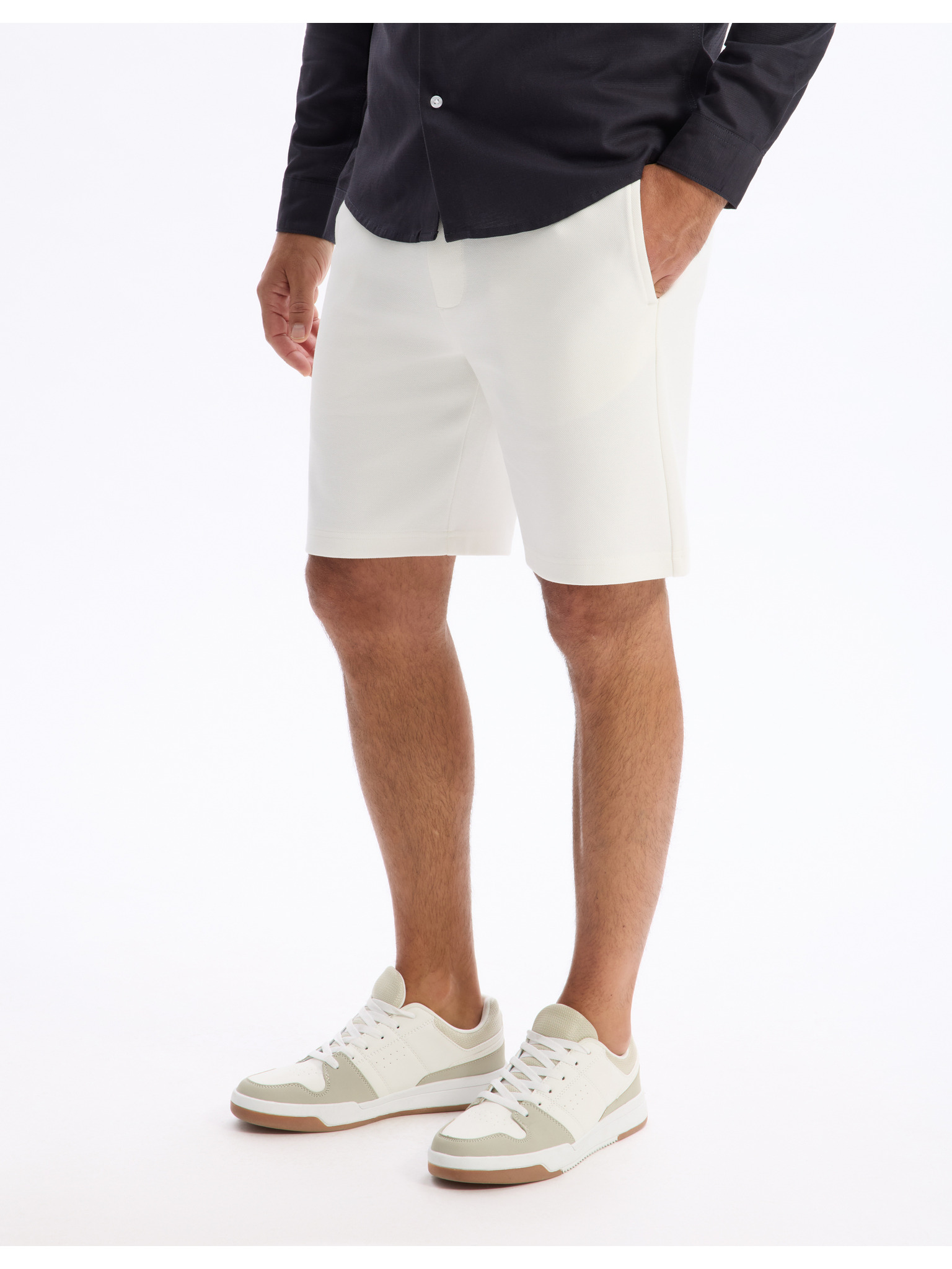 Férfi farmer rövidnadrág felhajtott szárral - krém
