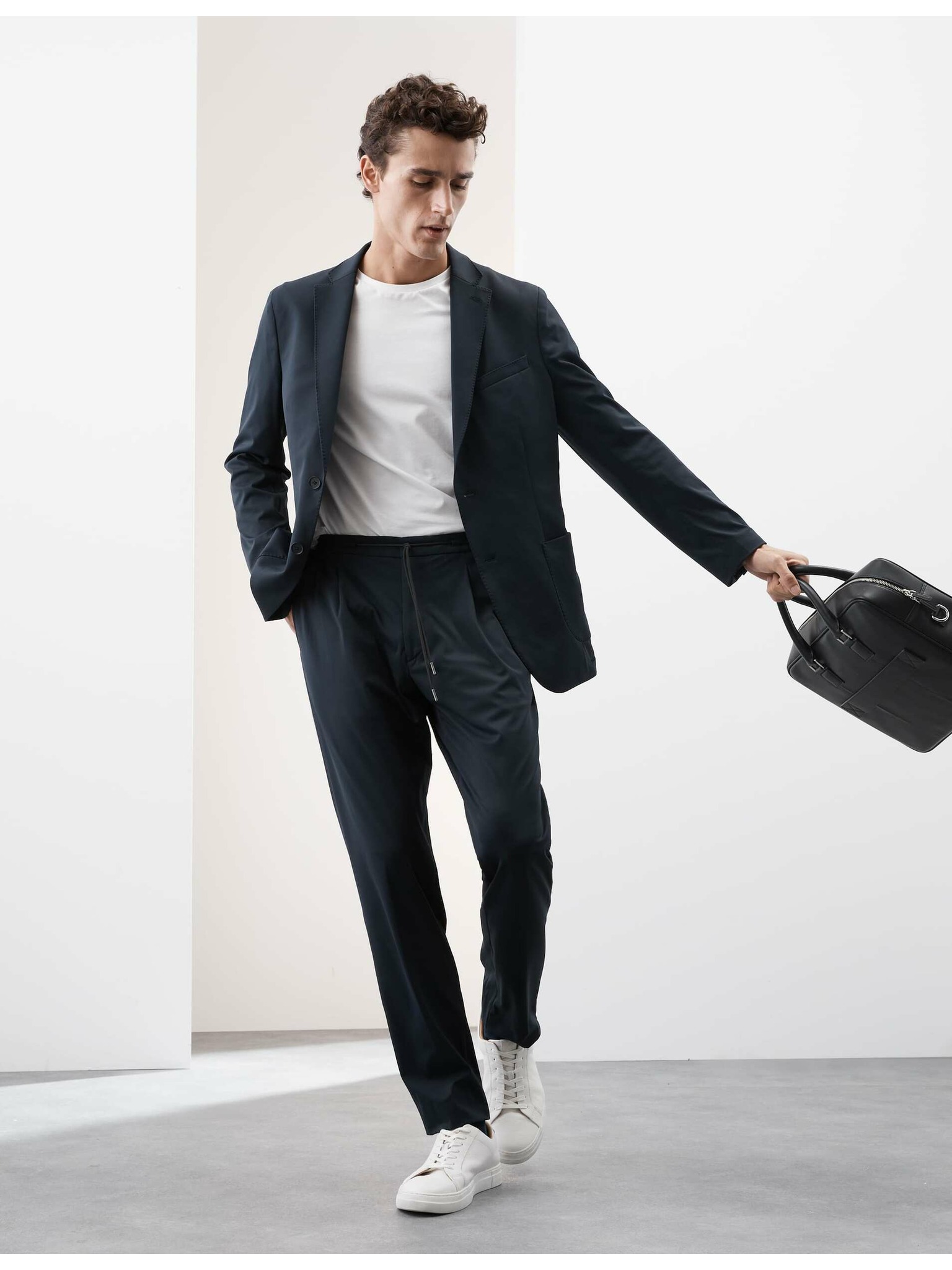 Sötétkék férfi Scotch & Soda The Finch gyapjúkeverék nadrág