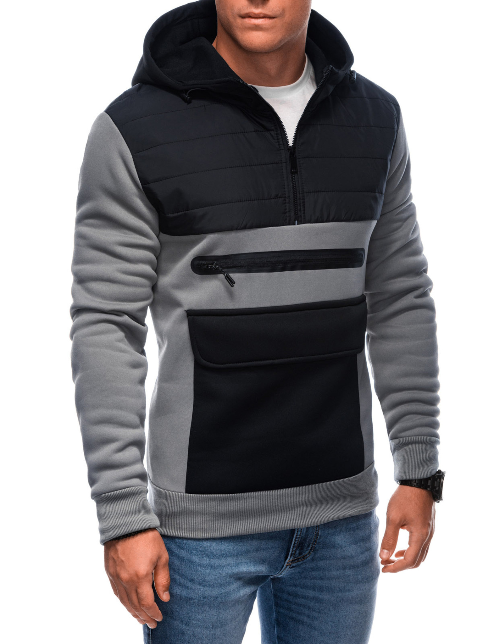 Férfi kapucnis pulóver B1710 - fekete EDOTI