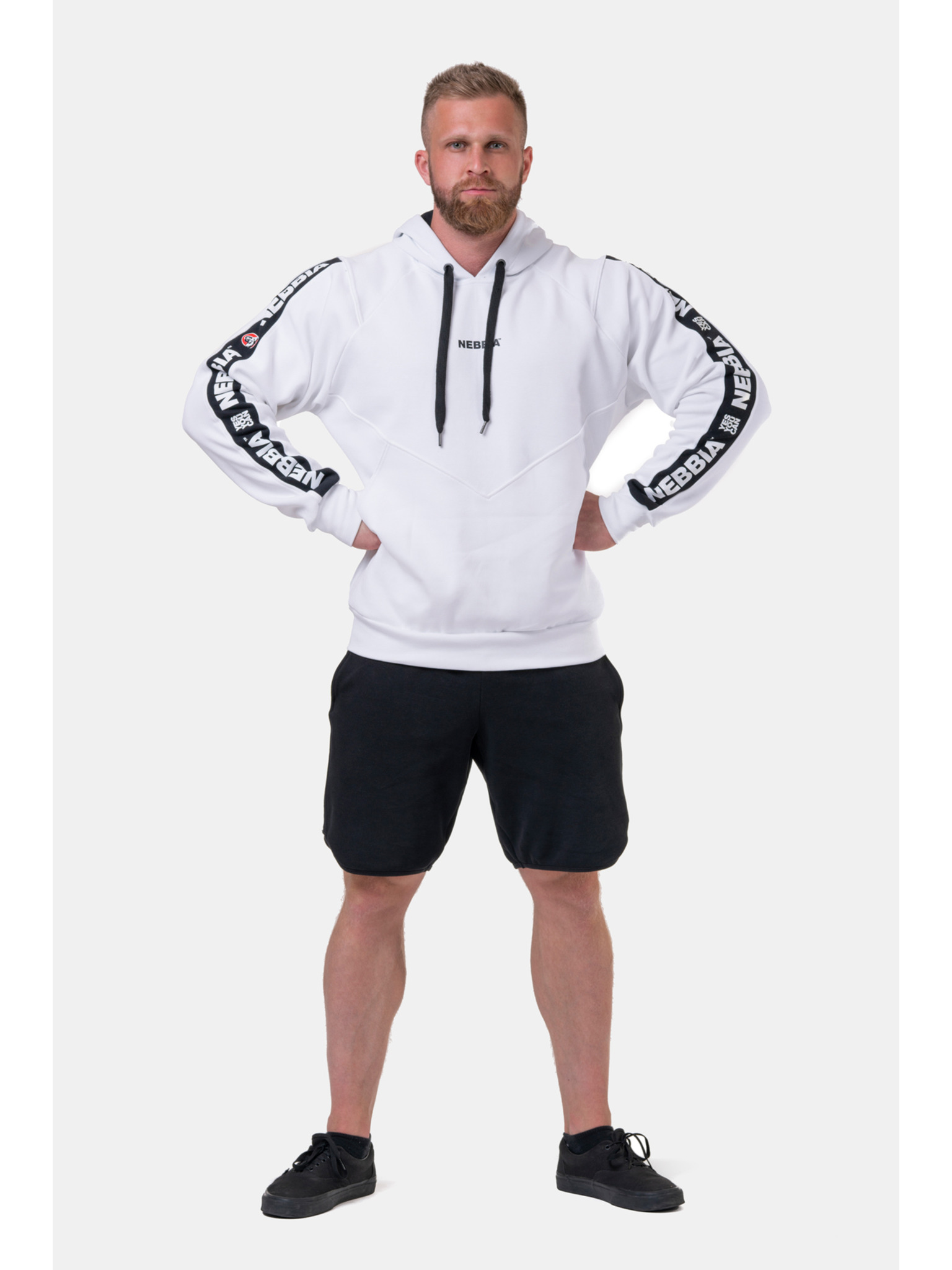 Férfi pamut kapucnis pulóver kontrasztos részletekkel - fehér