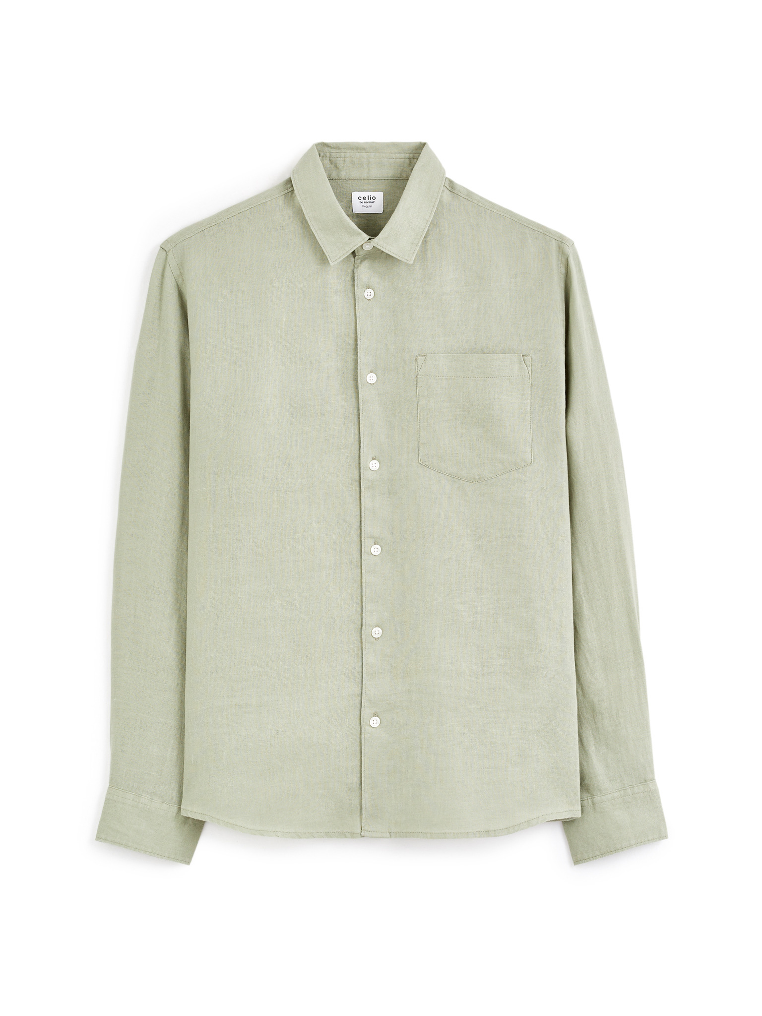 Férfi vászon ing álló gallérral és zsebbel REGULAR FIT - khaki