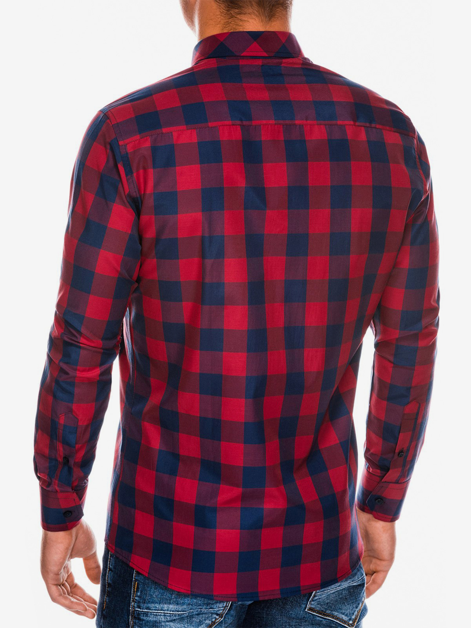 Kék és piros férfi kockás flanel ing Ombre ruházat